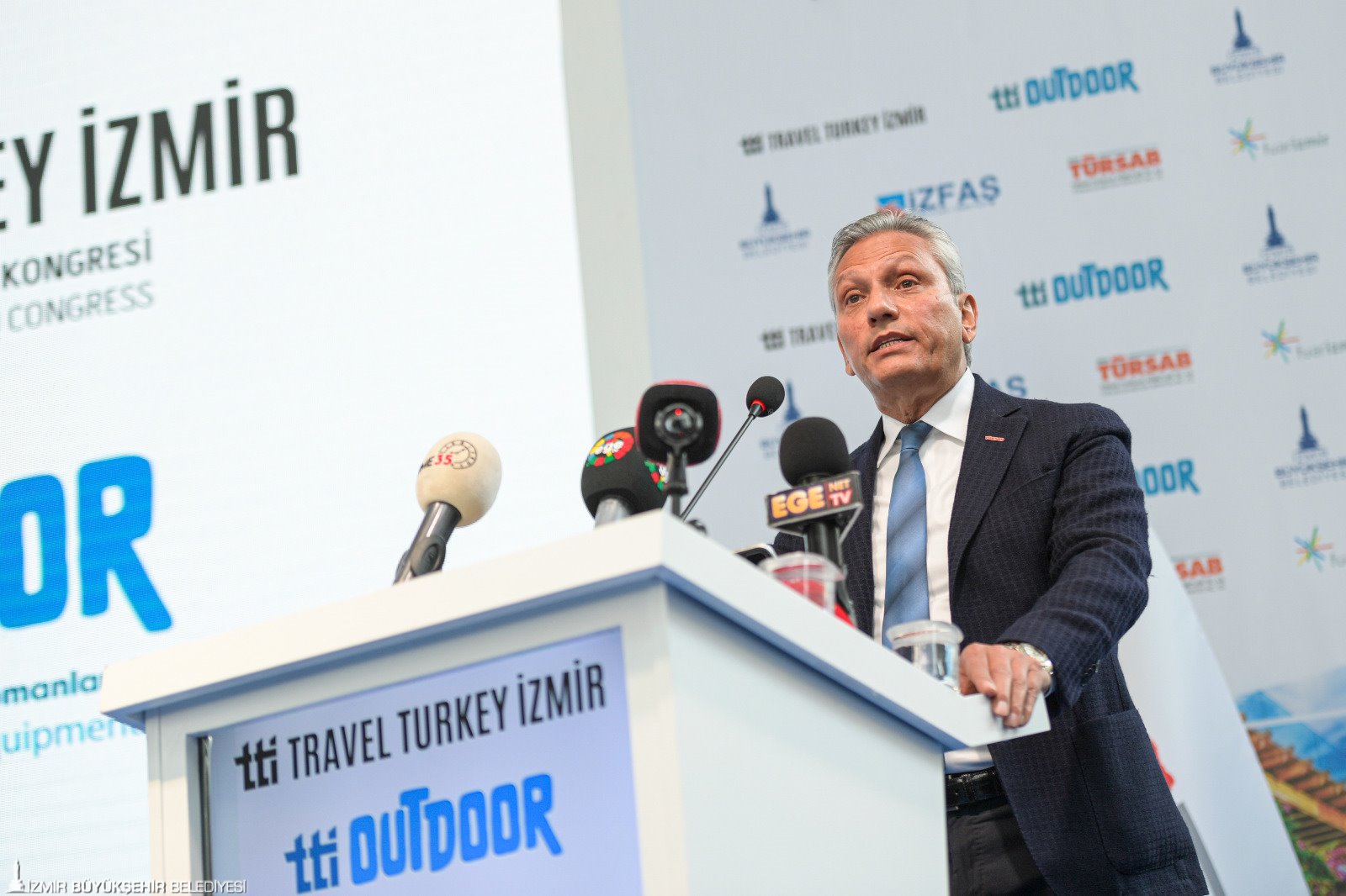 İzmir Büyükşehir Belediye Başkanı Tunç Soyer’in İzmir’i bir dünya kentine dönüştürme vizyonuyla çalışmalarını sürdüren İzmir Büyükşehir Belediyesi, kentin turizm potansiyeline fuarlarla ivme kazandırmaya devam ediyor. Geçen ay 15. IF Wedding Fashion İzmir - Gelinlik, Damatlık ve Abiye Giyim Fuarı ile yurt içi ve yurt dışından 2 binin üzerinde katılımcısıyla Türkiye ve dünya moda sektörünü İzmir'de buluşturan İzmir Büyükşehir Belediyesi, şimdi de Travel Turkey İzmir Fuarı ile Türkiye'nin ve dünyanın önde gelen turizm paydaşlarını ağırladı. Pandemi sonrasında turizm sektörünü ilk kez fiziki olarak bir araya getiren Travel Turkey İzmir ile eş zamanlı yapılan TTI Outdoor-Kamp, Karavan, Outdoor ve Ekipmanları Fuarı da turizm sektörünü mutlu etti.