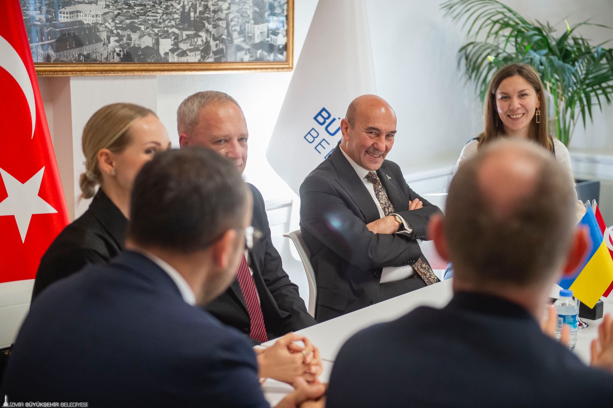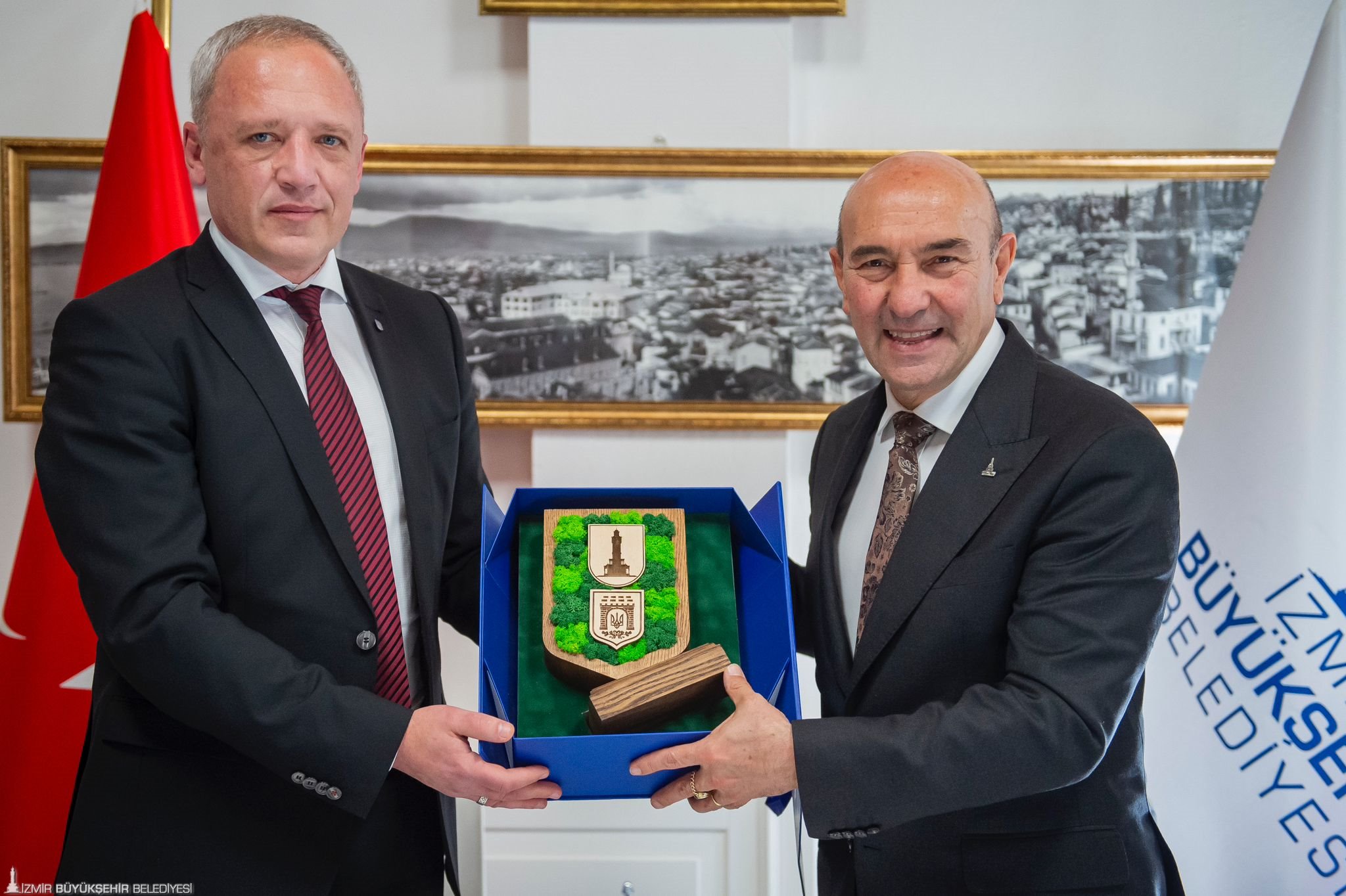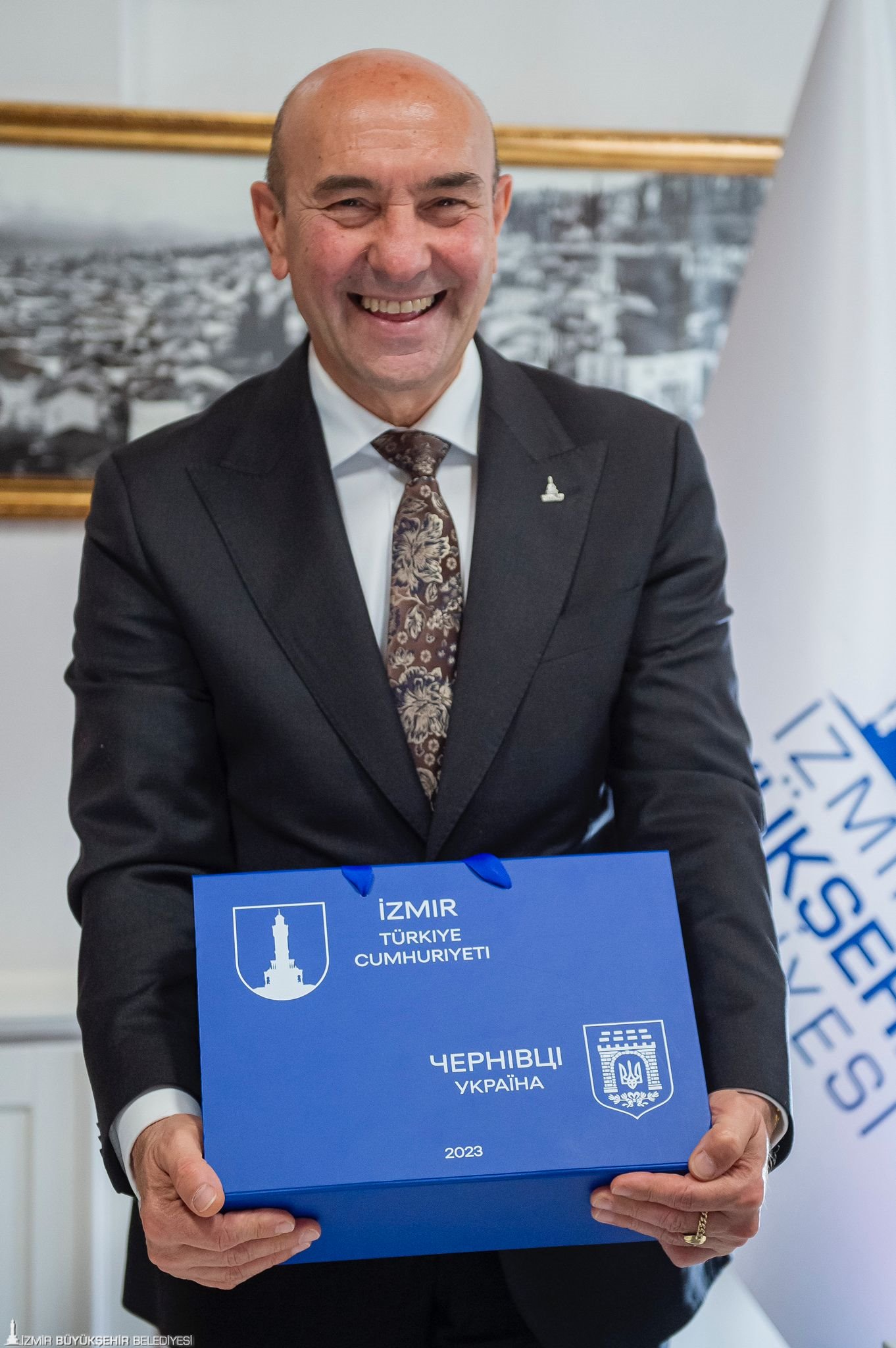İzmir Büyükşehir Belediyesi ile Ukrayna’nın Çernivtsi kenti arasında “kardeş kent” anlaşması imzalandı. İzmir Büyükşehir Belediyesi Egemenlik Evi’nde düzenlenen törenle atılan imzalar Rusya-Ukrayna savaşı sırasında imzalanan ilk anlaşma olma özelliği de taşıyor. İzmir- Çernivtsi kardeş kent imza törenine İzmir Büyükşehir Belediyesi Danışmanı Onur Eryüce, Çernivtsi Belediye Başkanı Roman Klichuk, Ukrayna Ankara Büyükelçisi Vasyl Bodnar, Çernivtsi Kent Konseyi Sosyo-Ekonomik Kalkınma ve Stratejik Planlama Departmanı Direktörü Serhii Bostan, Ukrayna İstanbul Başkonsolosu Roman Nedilskyi ve İzmir Ukraynalılar Derneği Başkanı Oksana Özek katıldı. İmza töreninin ardından Başkan Tunç Soyer ve Ukrayna heyeti Nefes Restoran’da düzenlenen yemekte bir araya geldi.