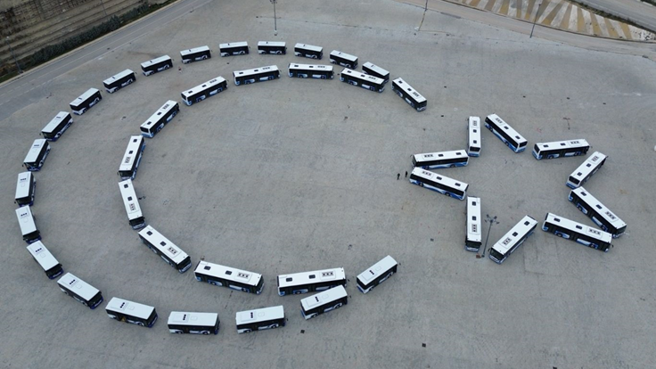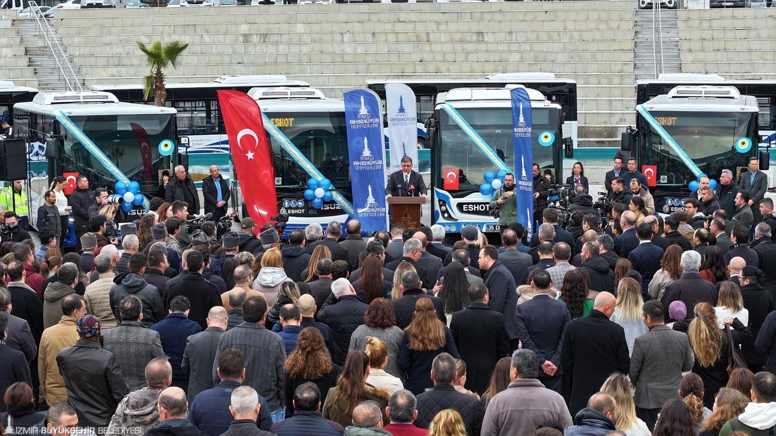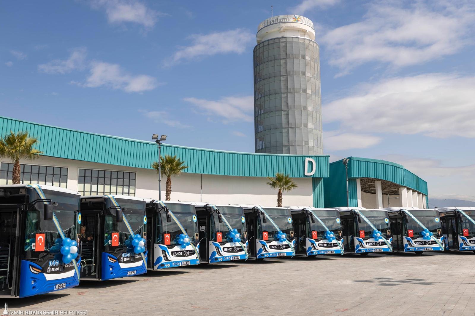 İzmir Büyükşehir Belediyesi, toplu ulaşım filosunu güçlendirmeye devam ediyor. Vatandaşların konforlu, güvenli ve rahat yolculuğu için çalışan İzmir Büyükşehir Belediyesi, ESHOT Genel Müdürlüğü bünyesine 41 yeni otobüs daha ekledi. Filoya kazandırılan yeni araçlar, İzmir Büyükşehir Belediyesi’nin kurumsal rengi olan aynı zamanda İzmir’in denizini ve gökyüzünü simgeleyen mavi renkte tasarlandı. Yeni otobüslere İzmirliler için şans ve güveni simgelemesi için “nazar boncuğu otobüsleri” adı verildi. Fuar İzmir Havuzlu Meydan’da gerçekleştirilen törene İzmir Büyükşehir Belediye Başkanı Dr. Cemil Tugay, İzmir Büyükşehir Belediyesi Başkan Vekili Dr. Zafer Levent Yıldır, ESHOT Genel Müdürü Övünç Özgen, ilçe belediye başkanları, İzmir Büyükşehir Belediyesi ve ESHOT Genel Müdürlüğü bürokratları, siyasi parti temsilcileri, muhtarlar ve meclis üyeleri katıldı. Isuzu Satış Direktörü Yusuf Teoman ve Satış Müdürü Murat Küçük ile Mercedes-Benz Türk AŞ Otobüs Kamu Satış Müdürü Selim Eyüboğlu Başkan Tugay'a plaket takdim etti. ESHOT Genel Müdürü Övünç Özgen de sembolik olarak nazar boncuğu şeklinde tasarlanan otobüs anahtarını Başkan Dr. Cemil Tugay'a teslim etti.
