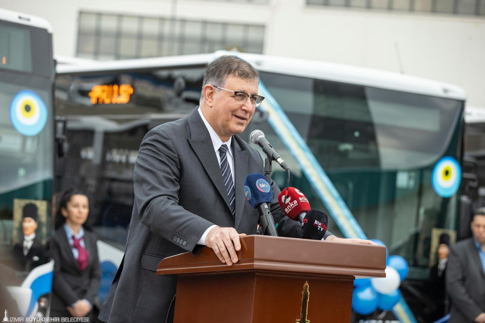 Troleybüs çalışmalarının devam ettiğini belirten Tugay, “Daha az karbon salımı, daha az işletme maliyetleri ve daha konforlu toplu taşıma için üzerimize düşeni yapmaya kararlıyız. Yeşil ve dijital dönüşüm yolunda, ülkemizin içinde bulunduğu ekonomik koşullar ve finansal zorluklara rağmen toplu ulaşımı da daha verimli, çevreci, sürdürülebilir hale getirmek için yatırımlara devam ediyoruz. İzmir'in denizini ve gökyüzünü yansıtan mavi renkleriyle kentimize modern bir kimlik kazandıran yeni otobüslerimiz, nazar bonculuklu otobüsler olarak hatırlanacak. Hemşerilerimiz için şans ve güveni simgelemesini diliyoruz. ‘41 kere maşallah’ diyoruz, yeni otobüslerimizin kazasız belasız uzun yıllar halkımıza hizmet etmesini diliyoruz” dedi.