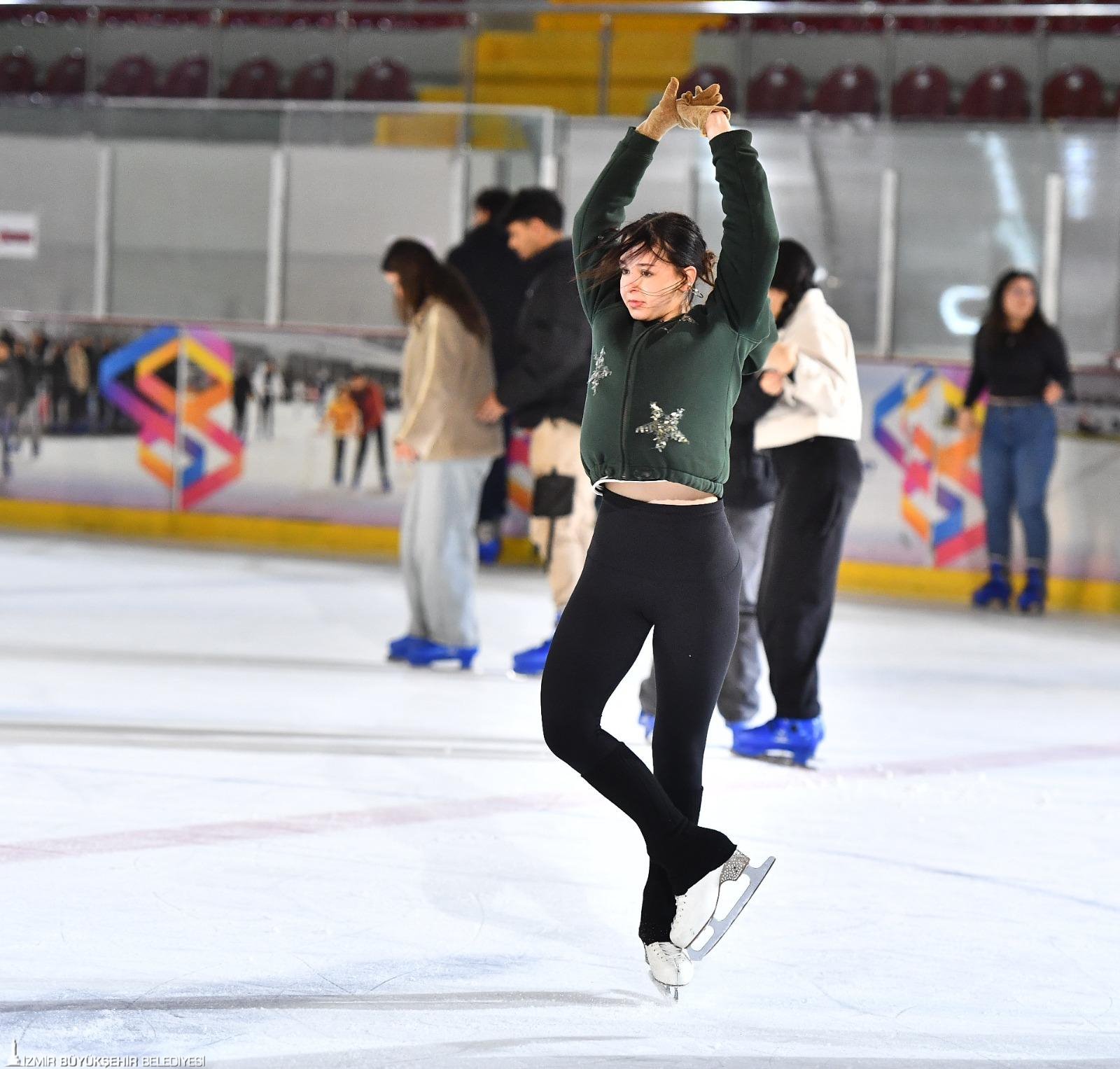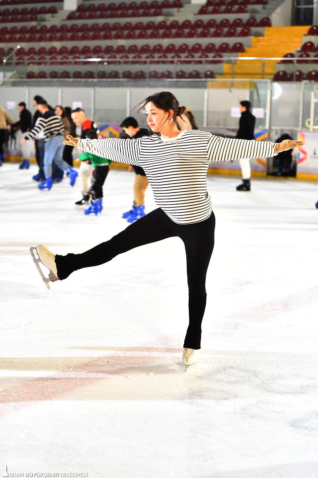 Manisa’dan gelen öğrenci Merve Saygın, “Manisa’da okuyorum. Ona rağmen buraya sık sık geliyorum. Burası çok keyifli. Gelmek için günleri sayıyorum. İzmir’de böyle bir hizmetin olması çok değerli. Buradaki herkes çok ilgili ve nazik. Buz patenine 5 ay önce başladım ve sıkı çalışmayla gelişebildim. Zam olmaması çok iyi. Teşekkür ederiz. Harçlığım cebime kalacak” dedi.