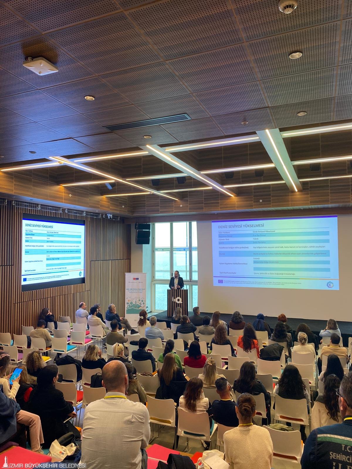 İzmir Büyükşehir Belediyesi İklim Değişikliği ve Sıfır Atık Dairesi Başkanlığı, Avrupa genelinde iklim direncini artırmayı hedefleyen CLIMAAX projesi kapsamında geliştirilen “İklime Hazır İzmir: Dirençlilik Stratejilerinin Geliştirilmesi (CRIZ-ERS) Projesi’ni sürdürüyor. Büyükşehir Belediyesi, iklim krizi ile mücadele stratejilerini güçlendirerek kentin çoklu iklim krizlerine hazırlanmasının yanı sıra olası risklerin bilimsel bir çerçevede analiz edilmesini, kırılganlıkların belirlenmesini ve uyum stratejilerinin geliştirilmesini hedefliyor. Üç fazdan oluşan projede önemli bir aşama daha tamamlandı. Üçüncü kapsamında düzenlenen “Uyum Seçeneklerine İlişkin Paydaş Çalıştayı”, İzQ Girişimcilik Merkezi’nde geniş bir katılımla gerçekleştirildi.