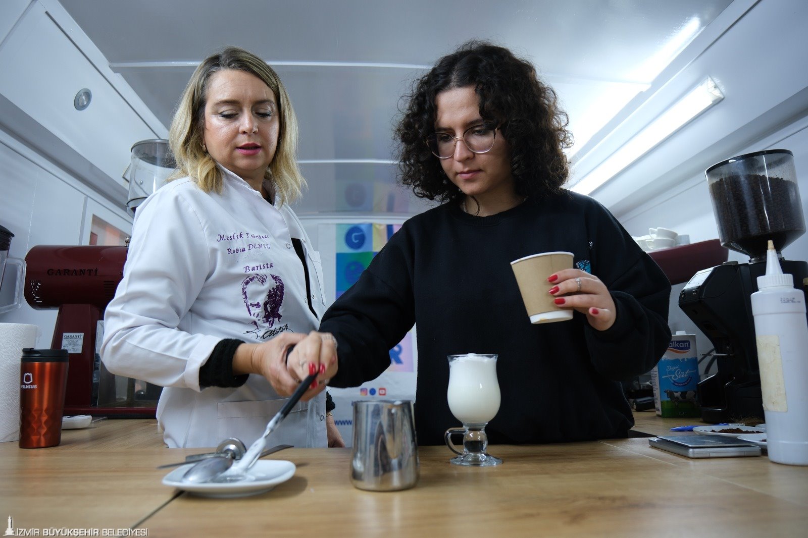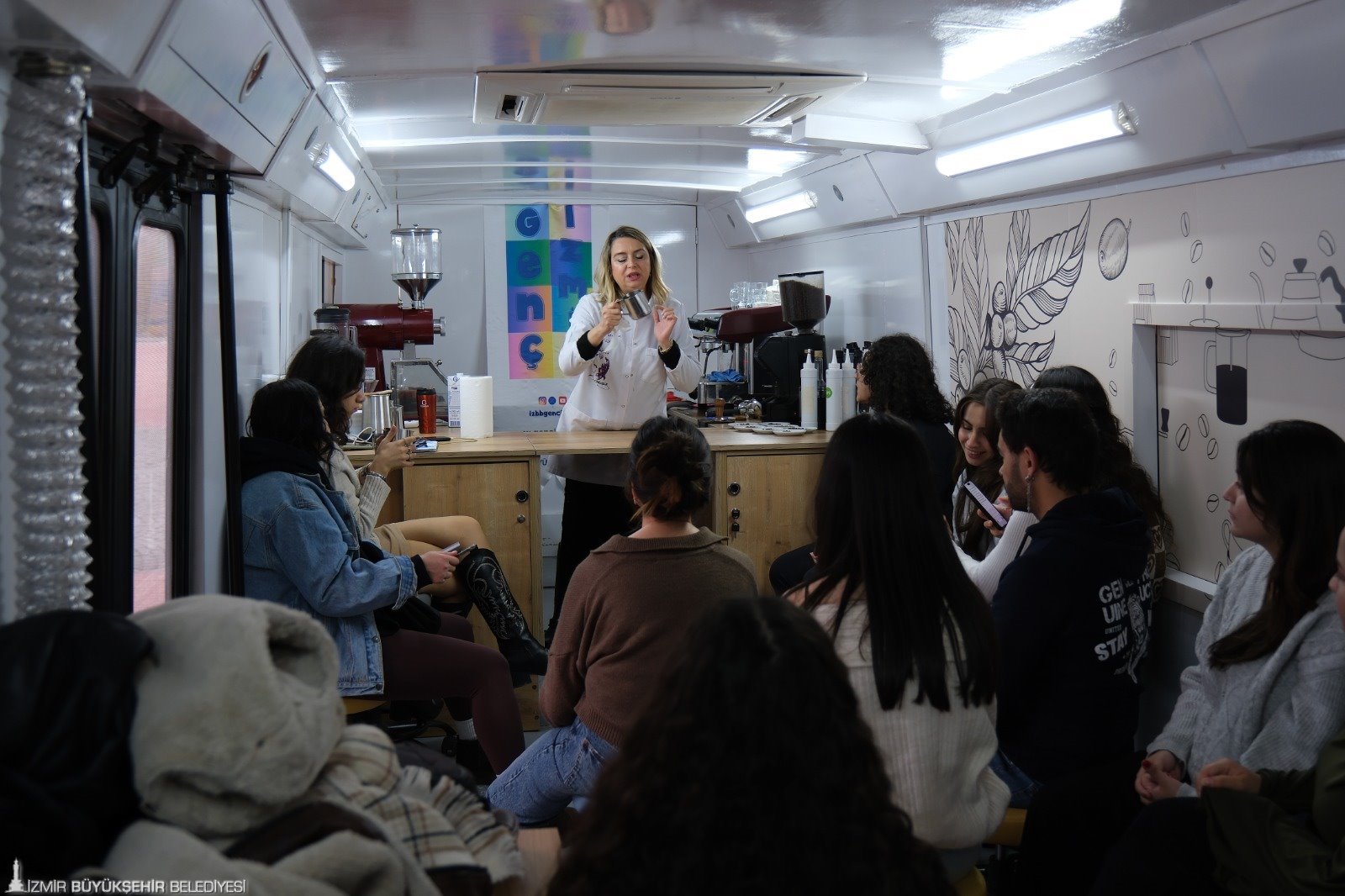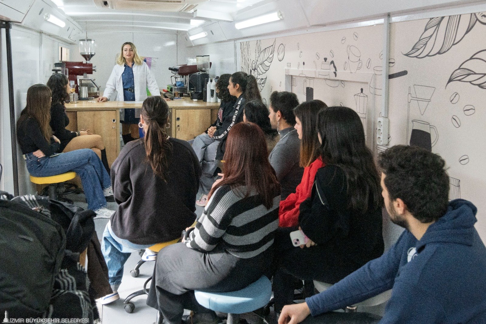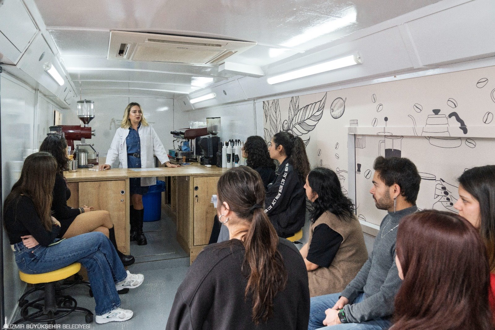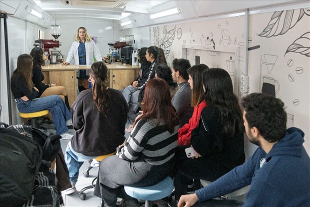 İzmir Büyükşehir Belediyesi’ne bağlı Genç İzmir Birimi bünyesinde eğitim şefliği görevini yürüten Berna Yurdusev, gençleri istihdama dahil etmek için mobil barista atölyesi düzenlediklerini belirterek “Şu an 30 katılımcımız var. Yedekler de var, talep de çok. Gençler burada hızlandırılmış barista eğitimi alıyorlar. Hem eğleniyorlar hem barista nasıl olunur öğreniyorlar. Dünya kahvelerine dair bilgi alıyorlar. Aşık Veysel Rekreasyon Alanı’nda başladık. Diğeri Çiğli Gençlik Merkezi’nde olacak” dedi.