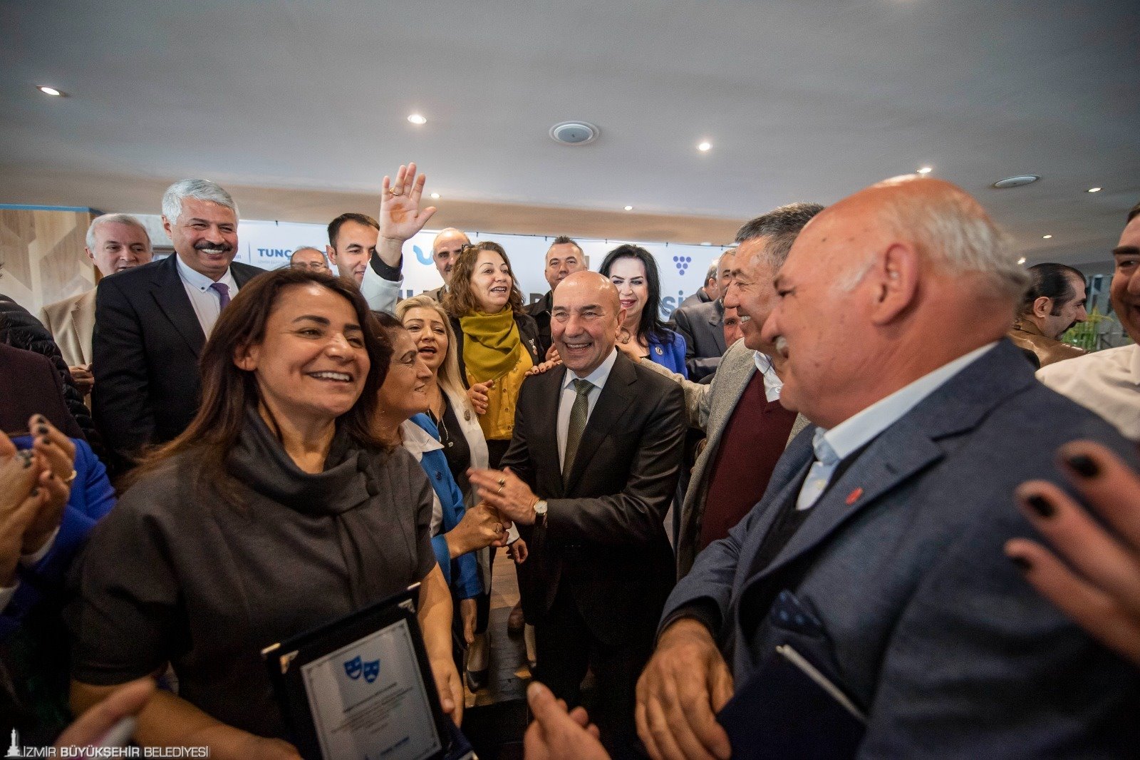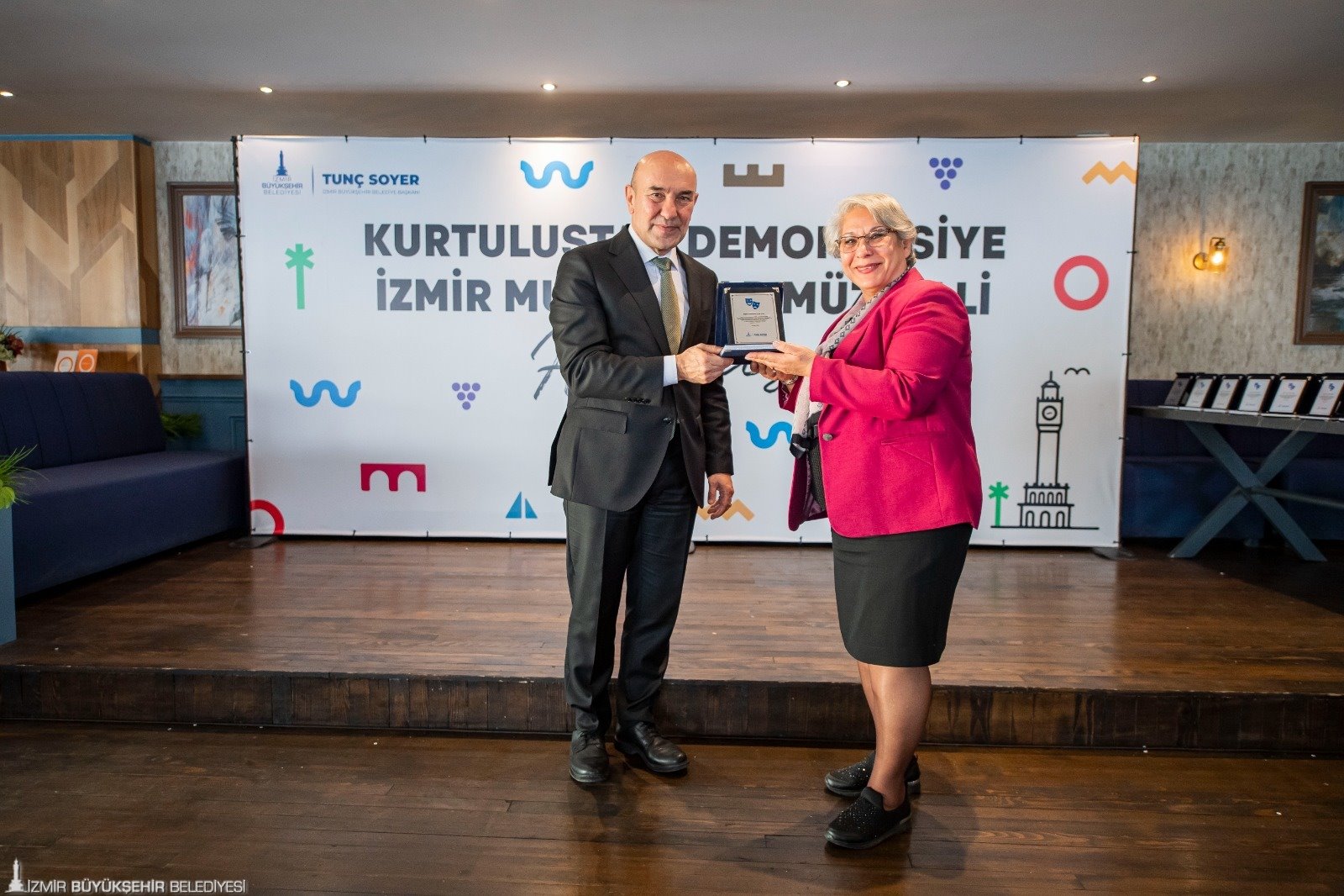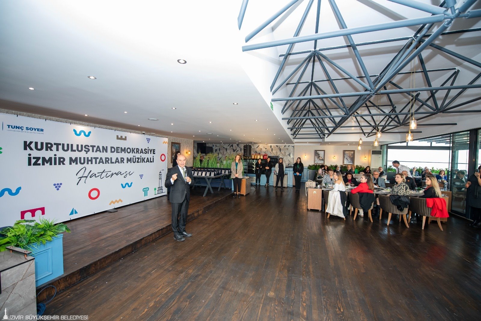 İzmir Büyükşehir Belediye Başkanı Tunç Soyer, İzmir’in kurtuluşunun 100. yıl dönümü için hazırlanan “Kurtuluştan Demokrasiye İzmir Muhtarlar Müzikali”nde oynayan 100 muhtarla bir araya geldi. Başkan Tunç Soyer, Nefes Restoran’daki buluşmada muhtarlara ve müzikalin eğitmenlerine teşekkür plaketi verdi. Muhtarlar “En büyük başkan Tunç Başkan”, “İşte Başkan gerçek Başkan” sloganları attı.