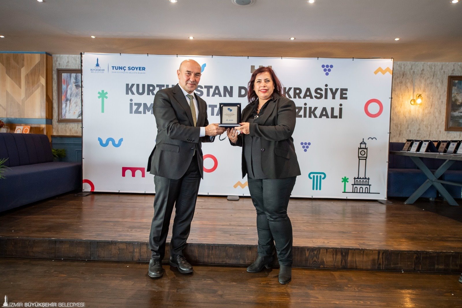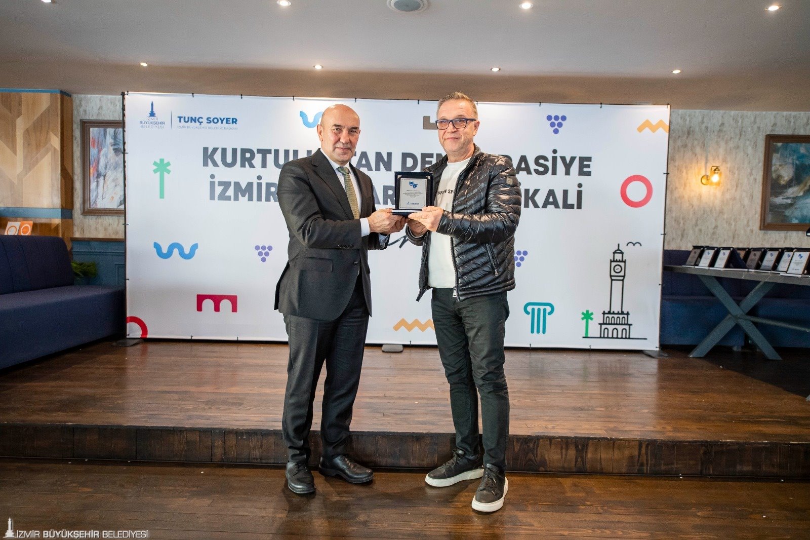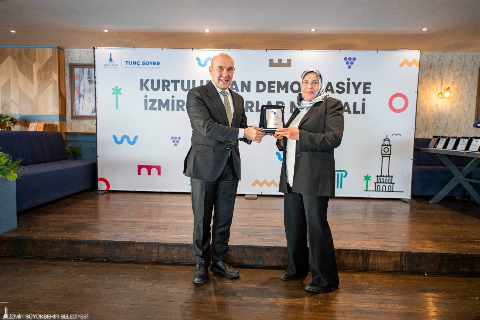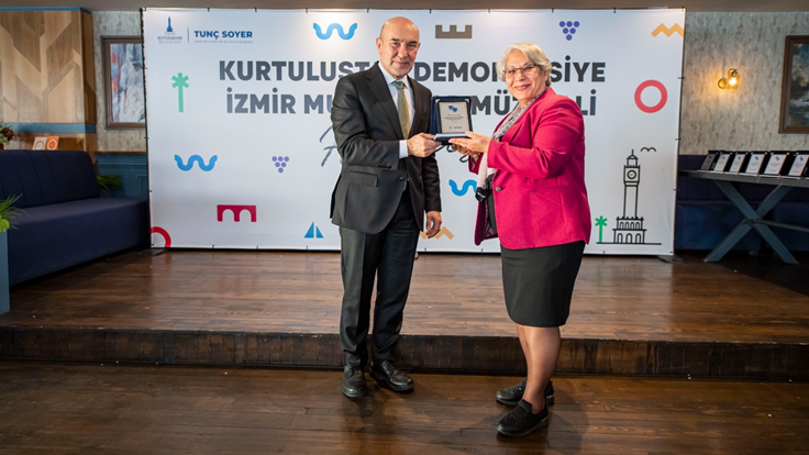 İzmir Büyükşehir Belediye Başkanı Tunç Soyer, İzmir’in kurtuluşunun 100. yıl dönümü için hazırlanan “Kurtuluştan Demokrasiye İzmir Muhtarlar Müzikali”nde oynayan 100 muhtarla bir araya geldi. Başkan Tunç Soyer, Nefes Restoran’daki buluşmada muhtarlara ve müzikalin eğitmenlerine teşekkür plaketi verdi. Muhtarlar “En büyük başkan Tunç Başkan”, “İşte Başkan gerçek Başkan” sloganları attı.
