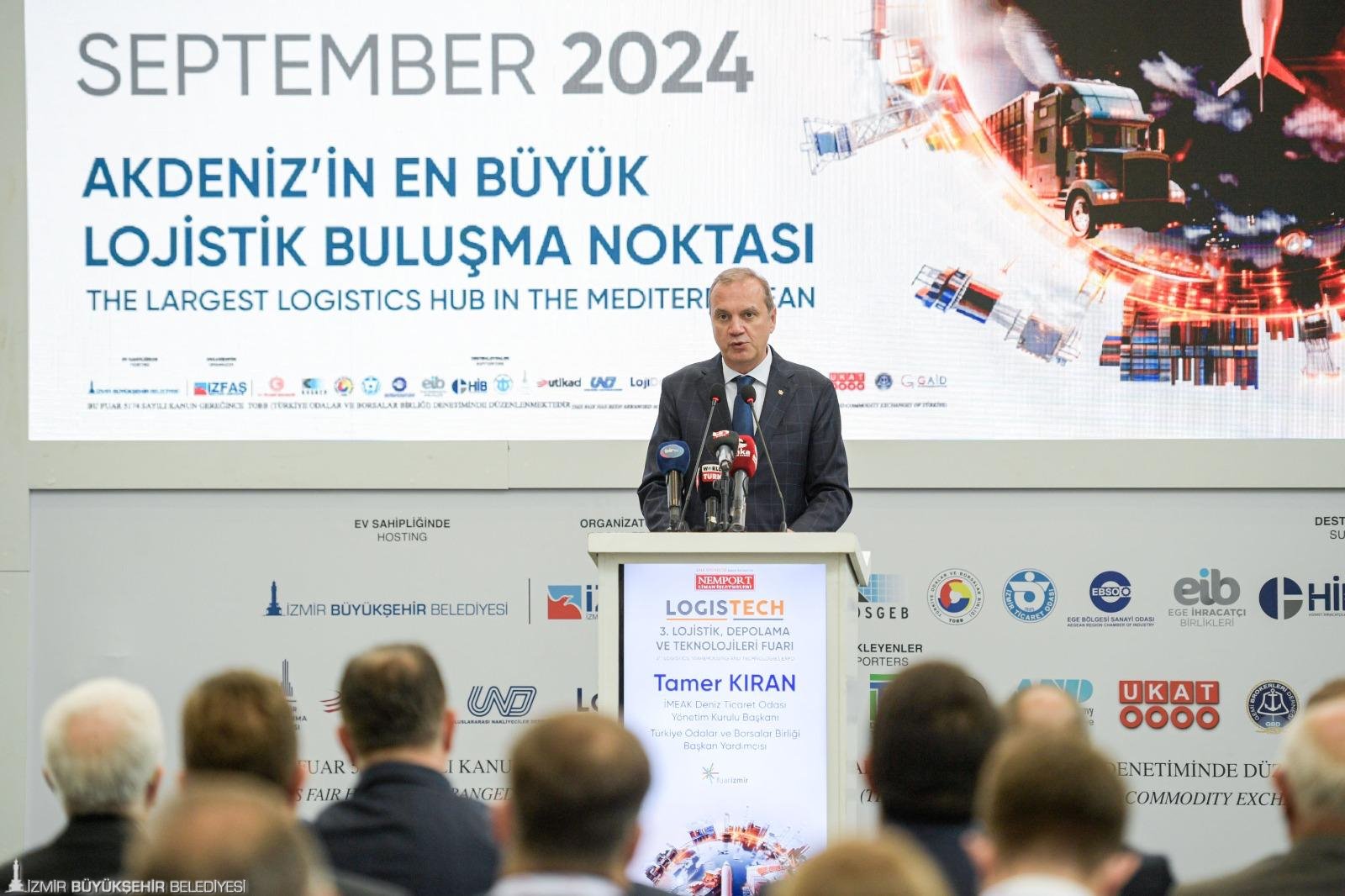 İMEAK Deniz Ticaret Odası Yönetim Kurulu Başkanı ve Türkiye Odalar ve Borsalar Birliği Başkan Yardımcısı Tamer Kıran da bu yıl fuarın İzmir’in ve Ege’nin lojistik performansına önemli katkılar sağladığını belirterek “Bu tür organizasyonların sektördeki son trendlerin takibi, iş ağının güçlendirilmesi ve geliştirilmesi için çok önemli olduğunu düşünüyoruz. Türkiye, coğrafi konumu itibariyle Asya ve Avrupa arasında stratejik bir köprü konumunda yer alıyor. Bu konum, ülkemizi hem kara hem de deniz yoluyla önemli bir ticaret merkezi yaparken, Türkiye’nin lojistik potansiyeli, sadece coğrafi konumuyla değil gelişmiş altyapı yatırımları ve dinamik ekonomik yapısı ile de destekleniyor. Son dönemde ortaya çıkan ticaret koridorları da, Türkiye’nin lojistik sektöründeki stratejilerinde önemli bir yere sahip. Çin’in Kuşak ve Yol İnisiyatifi, bu koridorlarda şu an için en dikkat çeken olarak öne çıkıyor. Çin’in bu global projeyi hayata geçirmesi, Türkiye’yi Asya ve Avrupa arasındaki önemli bir transit konumu ülkesi haline getirdi” dedi.