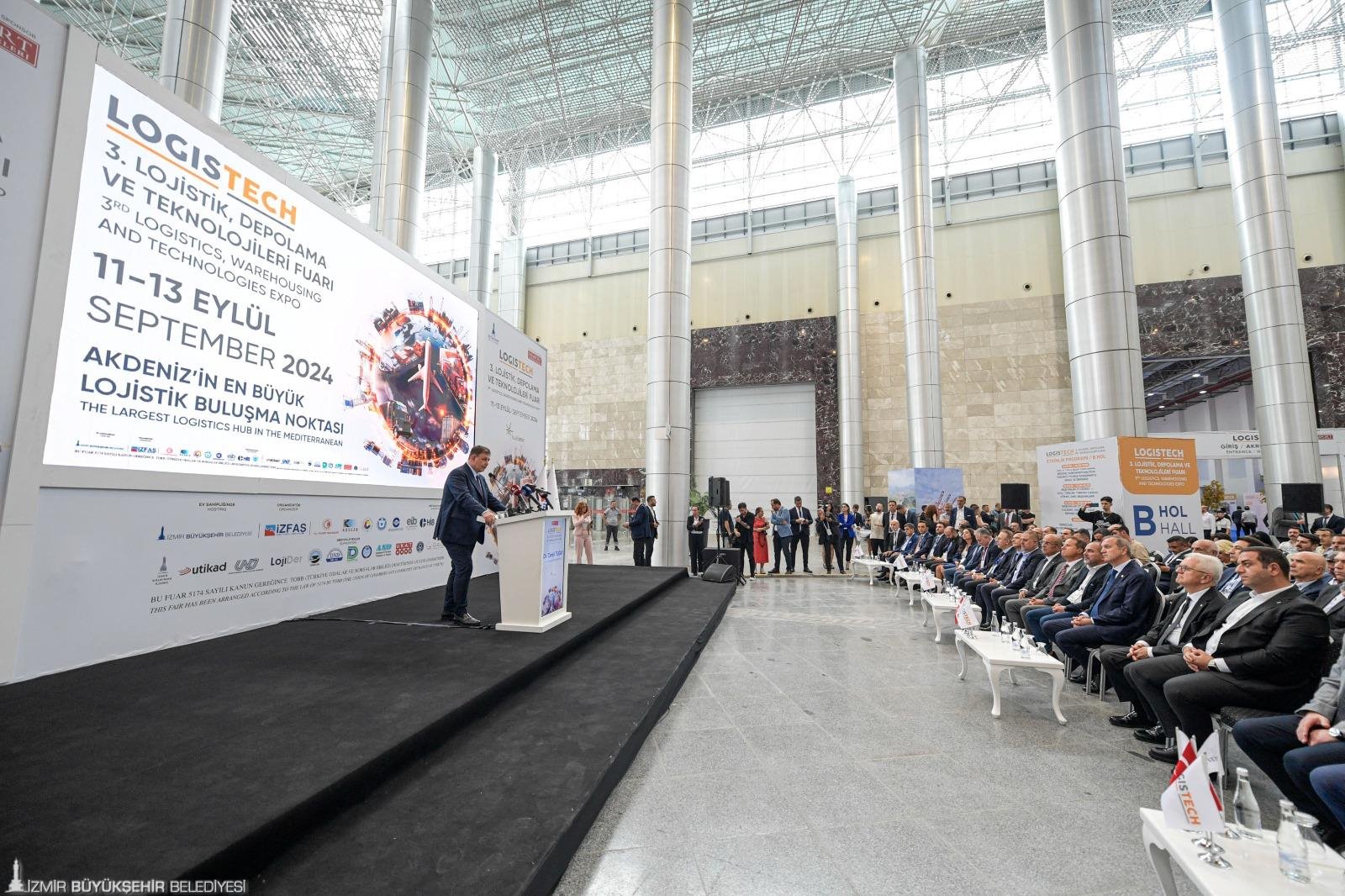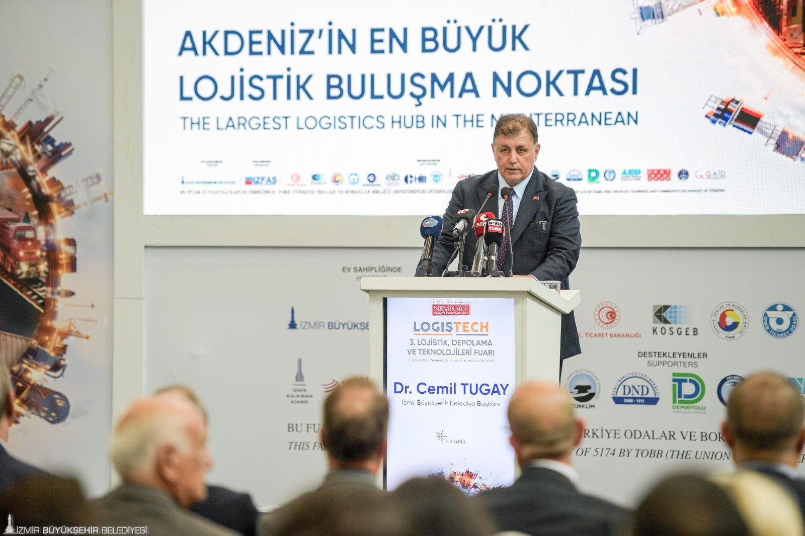 Fuar İzmir’de düzenlenen açılış töreninde konuşan İzmir Büyükşehir Belediye Başkanı Dr. Cemil Tugay, İzmir’in tarihsel anlamda lojistik merkezi olduğunu, İzmir Büyükşehir Belediyesi olarak İzmir’i Türkiye’nin lojistik merkez üssü yapma hedefiyle çalışmaya devam ettiklerini belirtti. Tugay, “Çin öncülüğünde hayata geçirilen Bir Kuşak Bir Yol projesinde karayolunda İstanbul, deniz yolunda da Atina Pire Limanı yerine İzmir’in ortak koridorda Batı’ya açılan kapı olmasını hedefliyoruz. Bunun için ulusal ve uluslararası lojistik sektörünü bu fuarda bir araya getiriyoruz. Fuarımızda nitelikli katılımcı ve ziyaretçi sayısı her yıl artıyor. Stant alanları, 11 bin metrekareyi aştı. Bu özellikleriyle Türkiye’nin en büyük lojistik fuarı niteliği taşıyor” diye konuştu.