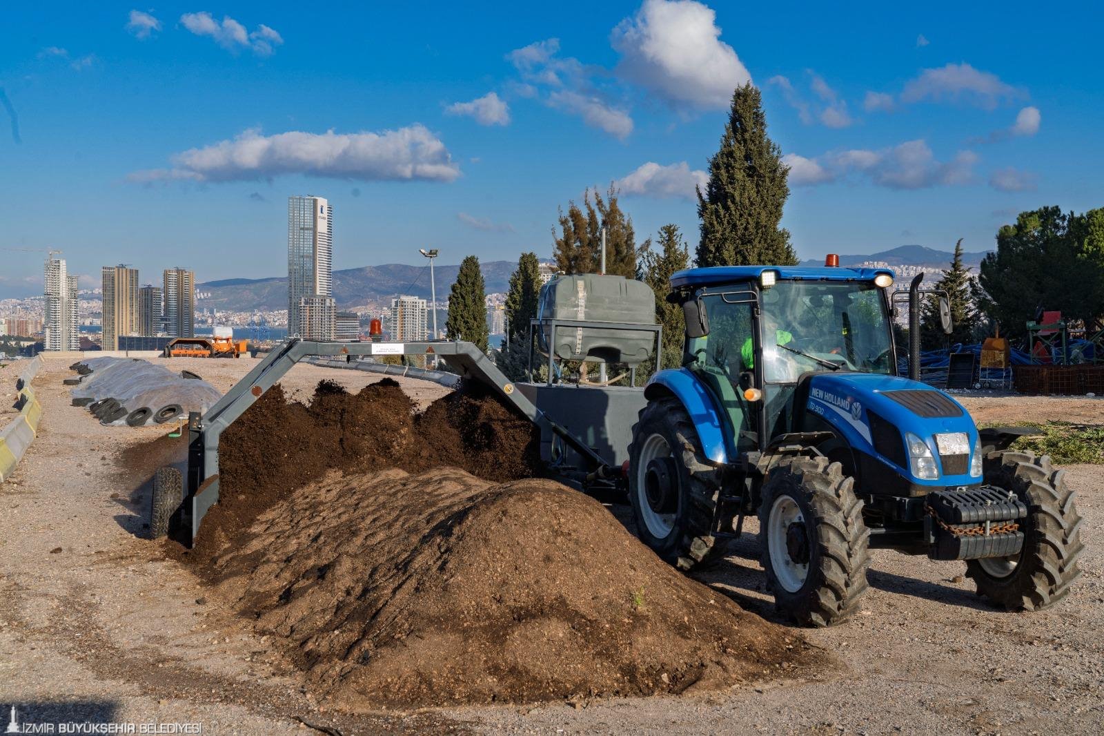 Çalışmalar hakkında bilgi veren İzmir Büyükşehir Belediyesi Park ve Bahçeler Dairesi Başkanlığı Ziraat Mühendisi Muzaffer Komutan, “Cemil Başkanımızın önderliğinde, Park ve Bahçeler Dairesi Başkanlığı’mızın MTK yerleşkesinde kompost ve biyokömür tesislerimizde yeşil alanlarımızdan gelen atıkları, İzmir Doğal Yaşam Parkı’ndan getirdiğimiz hayvan gübreleriyle karıştırıp, olgunlaştırıp gübre elde ediyoruz. Biyokömür tesisimizde ise atölyeden getirdiğimiz talaş malzemelerini ve patoz makinesinden çıkardığımız budak artıklarını biyokömür makinesinde yakarak inorganik madde olarak bitki kömürü elde ediyoruz. Sonuç olarak elde ettiğimiz organik ve inorganik maddeleri 5 bin metreküpe yakın hacimle tekrar yeşil alanlarımızda topraklarımızın yapısını iyileştirmek için kullanıyoruz. Böylelikle bir geri kazanım sağlamış oluyoruz” şeklinde konuştu.
