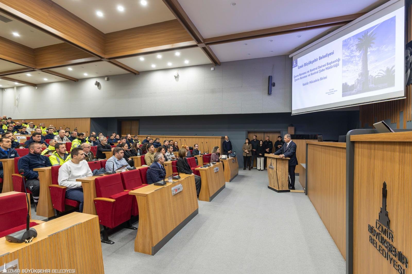 İzmir Büyükşehir Belediye Başkanı Dr. Cemil Tugay, İzmir Büyükşehir Belediyesi Çevre Koruma ve Kontrol Dairesi Başkanlığı Çevre Koruma Ve Kontrol Şube Müdürlüğü Vektör Mücadele Birimi çalışanları ile bir araya geldi. Meclis salonundaki buluşmada konuşan Başkan Tugay, sivrisinek ile haşereler gibi çevre ve halk sağlığını tehdit eden zararlılara karşı ilaçlama yaparak yoğun mücadele veren ekiplere teşekkür etti.