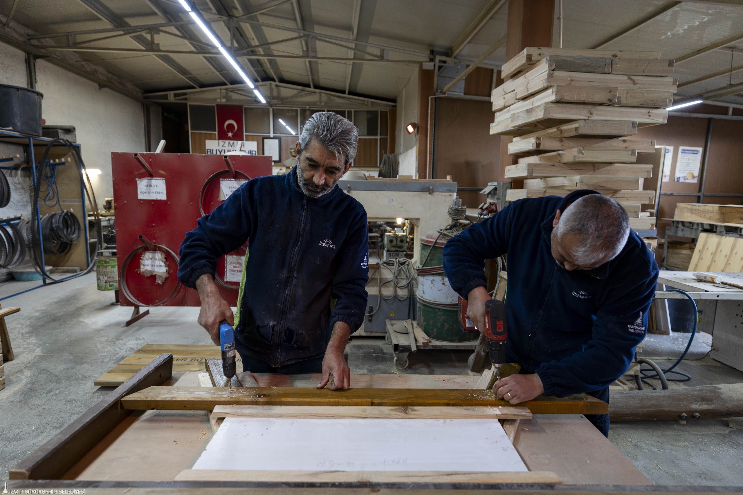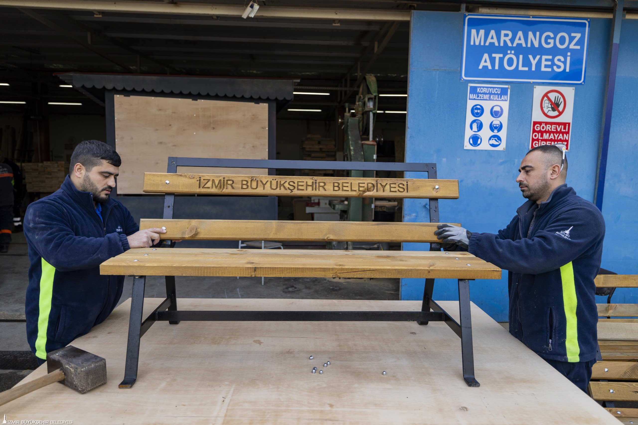 İzmir Büyükşehir Belediyesi, kentin sosyal donatı alanlarında kullanılan ekipmanları kendi bünyesinde üreterek yenilemeye devam ediyor. Park ve Bahçeler Dairesi Başkanlığı Ağaçlandırma Şube Müdürlüğü bünyesindeki Buca’daki Fırat Atölyesi, profesyonel ekibiyle kent genelinde kullanılan çöp potalarından banklara, piknik masalarından kent mobilyalarına, uyarı levhalarından sokak hayvanları için beslenme ve barınma odaklarına, satış dükkânlarından yeni yıl fotoğraf alanlarına kadar çok sayıda şehir donatısını bünyesinde üretiyor. 2025 yılında 2 binin üzerinde bank, bin 600 adet çöp potası ve 600 piknik masası üretilerek İzmirlinin hizmetine sunulmak üzere montajları yapıldı. İzmir Büyükşehir Belediyesi, kendi bünyesinde yürüttüğü bu uygulamayla hem yaşamı kolaylaştıracak estetik yeni tasarımları kente kazandırıyor hem de önemli ölçüde tasarruf sağlıyor.