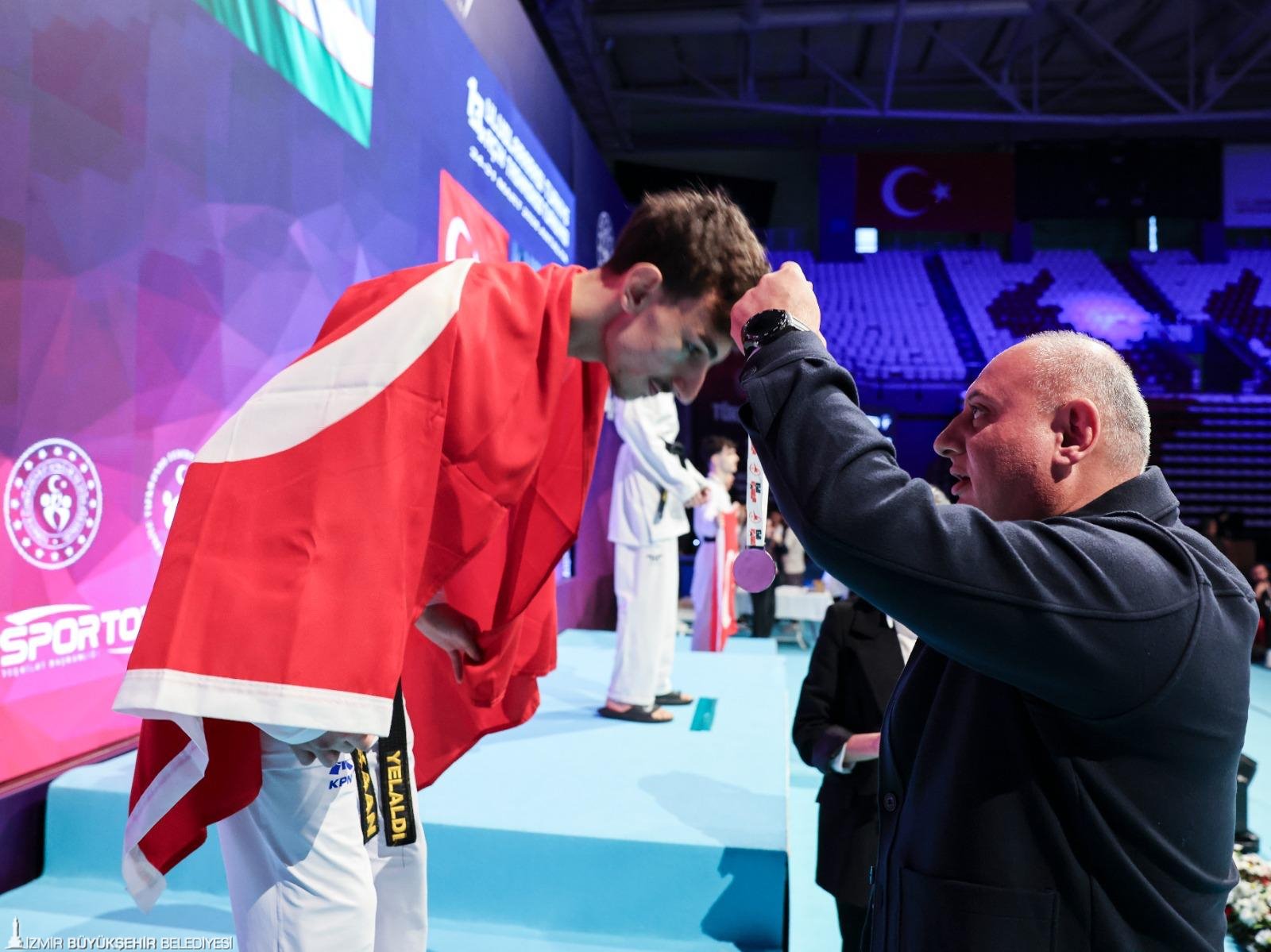 İzmir Büyükşehir Belediyesi Spor Kulübü’nün başarılı tekvandocuları 13. Uluslararası Türkiye Açık Taekwondo Turnuvası’nda iki gümüş ve bir bronz madalya kazandı. Antalya Spor Salonu’nda gerçekleştirilen ve 67 ülkeden 2 bin 552 sporcunun katıldığı organizasyonda 54 kiloda tatamiye çıkan İzmir Büyükşehir Belediye Spor Kulübü sporcusu Kaan Yelaldı, Büyük Erkekler kategorisinde 48 ülkeden 342 sporcu arasında mücadele etti. Yelaldı, ilk turda Tunuslu, ikinci turda Kazak, çeyrek finalde ise Türk rakibini mağlup ederek yarı finale yükseldi. Yarı finalde Özbek sporcu Jakhongir Khudayberdiev’i yenerek finale kalan sporcu, altın madalya mücadelesinde Marufjonov Dilmurodjon’a mağlup olarak turnuvayı gümüş madalya ile tamamladı.