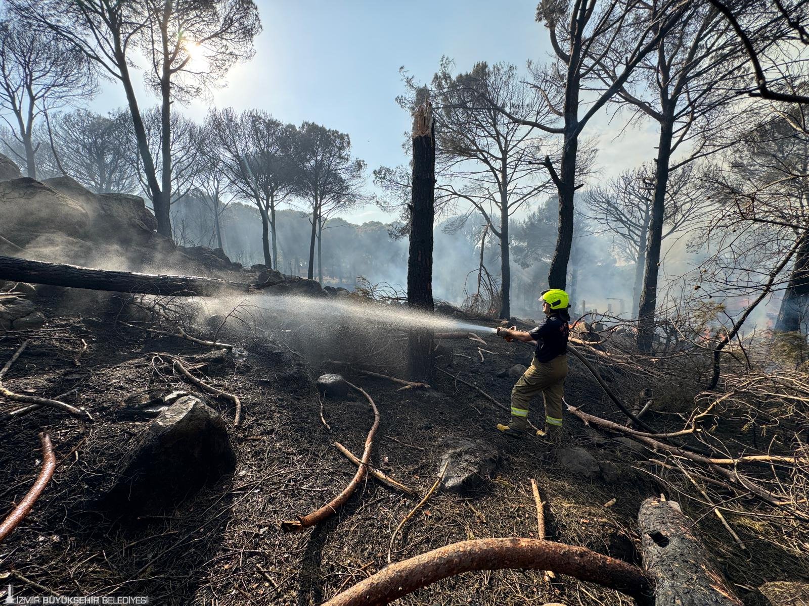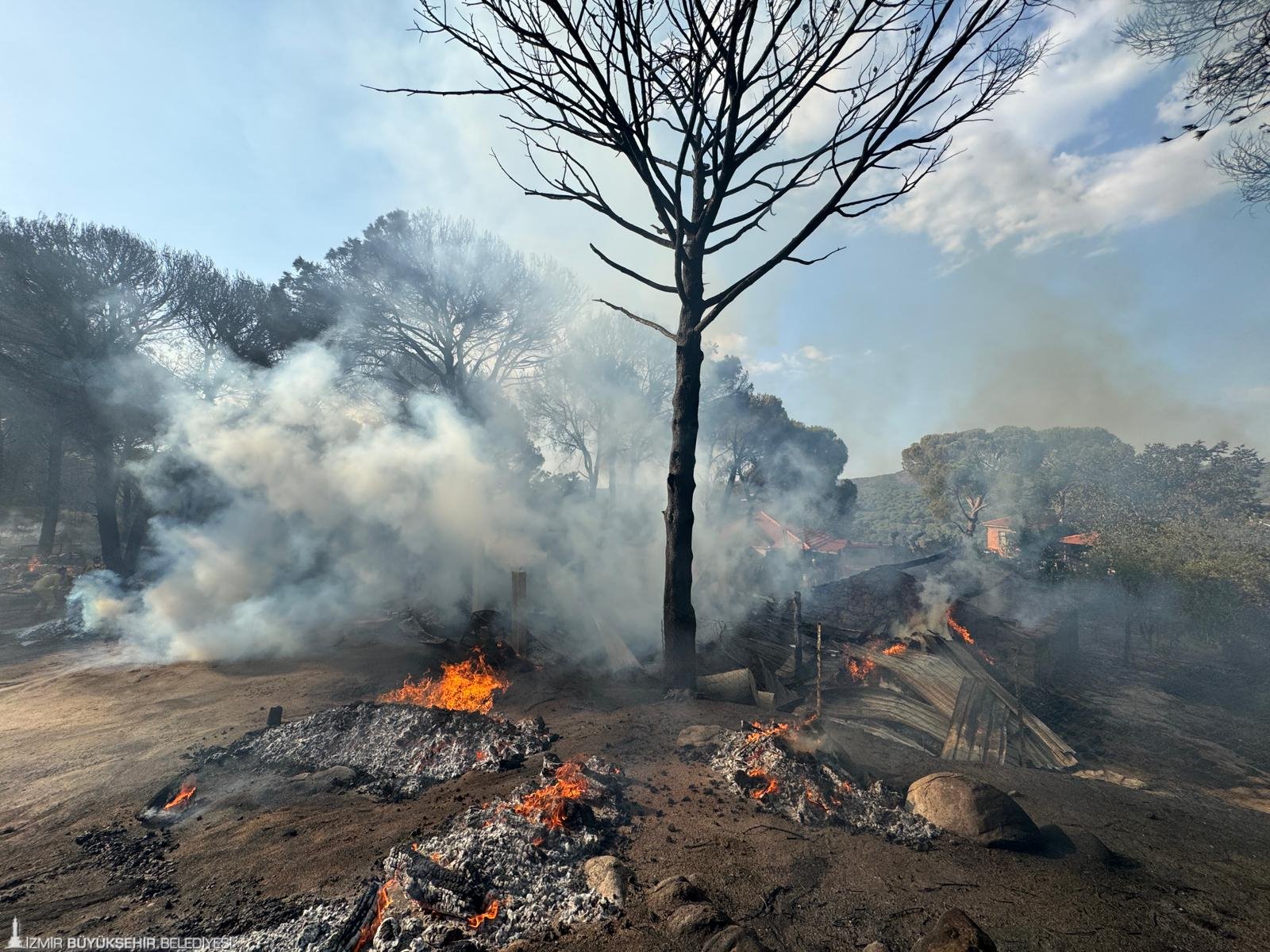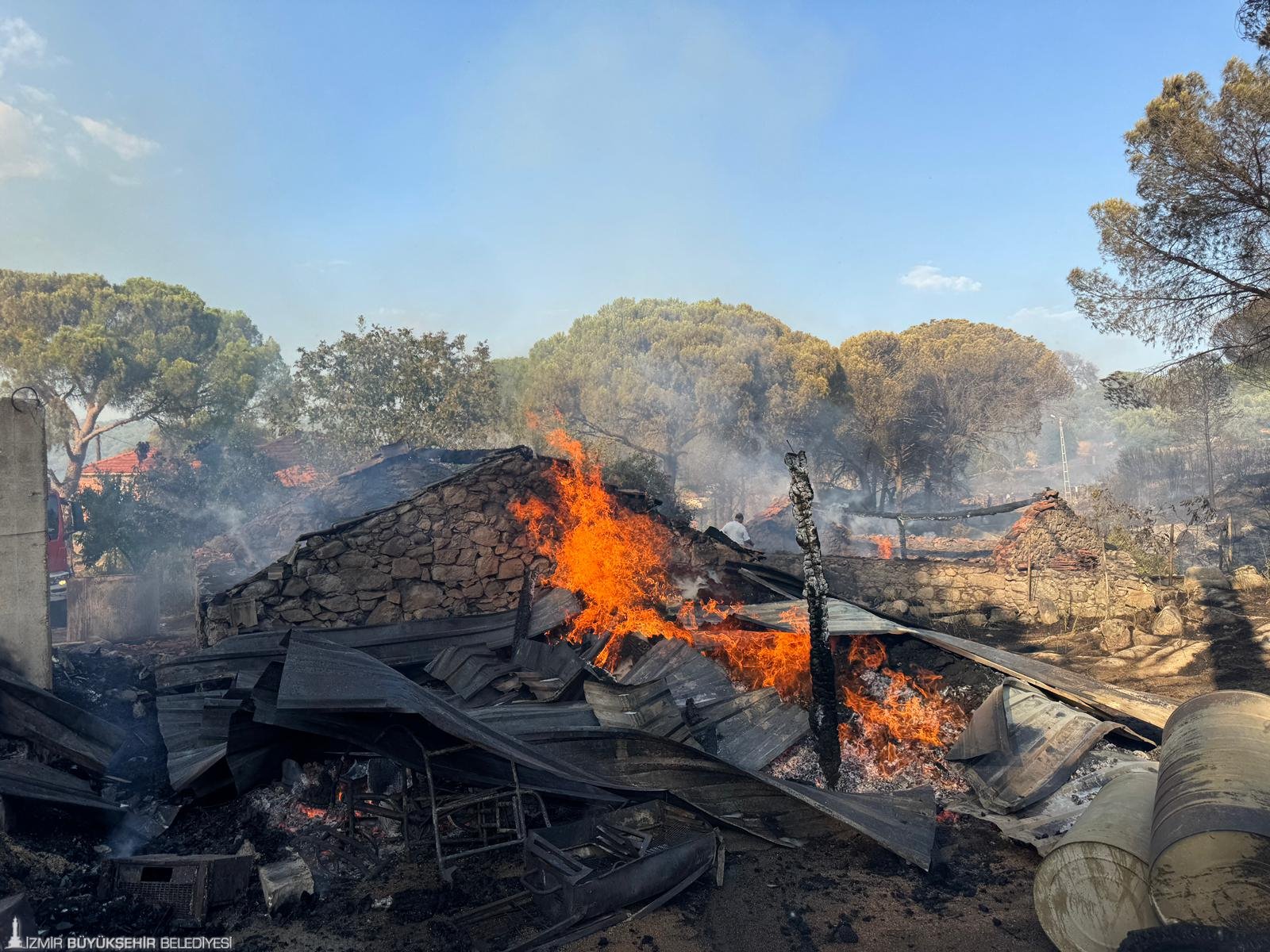 İzmir’in Bergama ilçesine bağlı Demircidere Mahallesi’nde bugün saat 15.30 sıralarında orman yangını çıktı. Şiddetli rüzgarın etkisiyle hızla yayılan alevler, Yukarıbey Mahallesi’ne de ulaşarak evlere sıçradı. İlk belirlemelere göre 3 evin hasar gördüğü yangına, İzmir Büyükşehir Belediyesi İtfaiye Dairesi Başkanlığı ekipleri 4 araç ve 12 personel ile Orman Bölge Müdürlüğü ekipleri de havadan ve karadan çok sayıda araç ve personelle müdahale ediyor. Yine İzmir Büyükşehir Belediyesi’nin muhtarlara dağıttığı su tankerleri ve orman gönüllüleri yangını söndürme çalışmalarına destek oluyor.