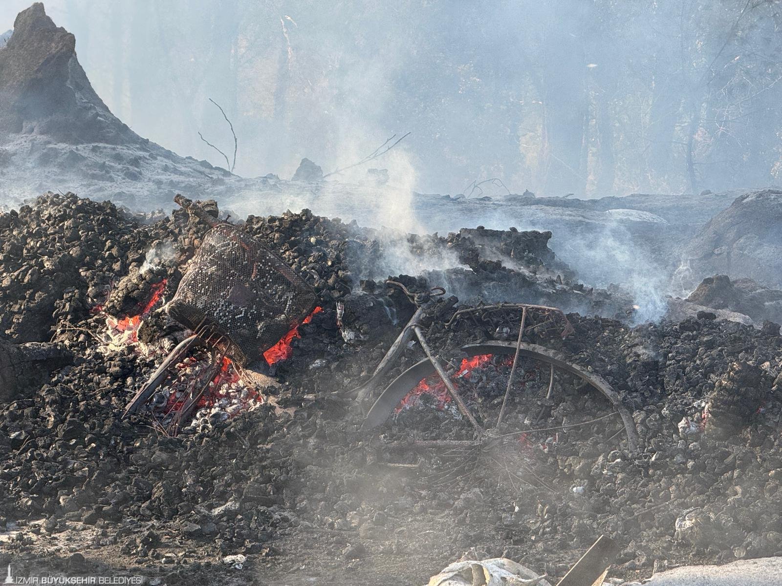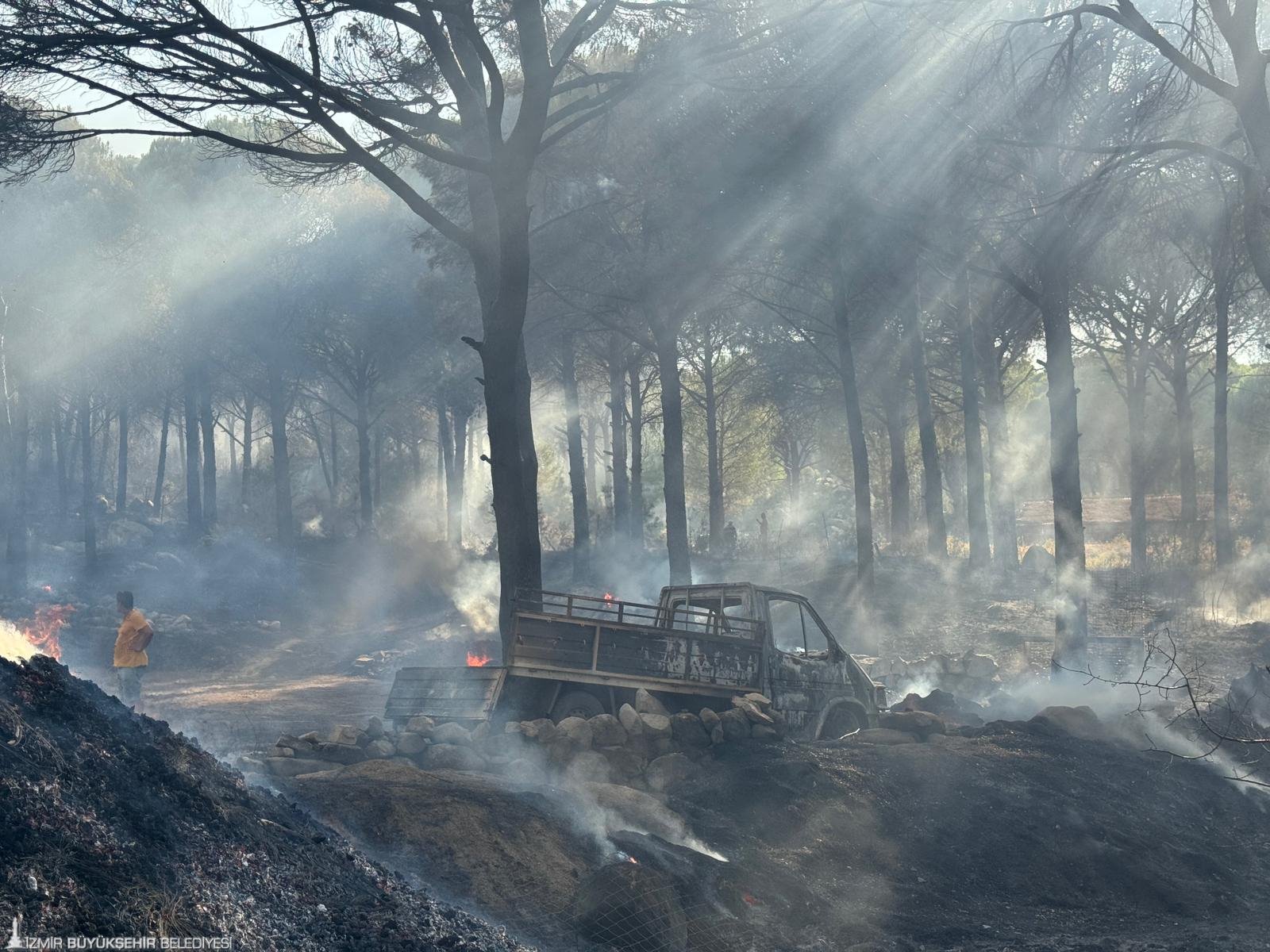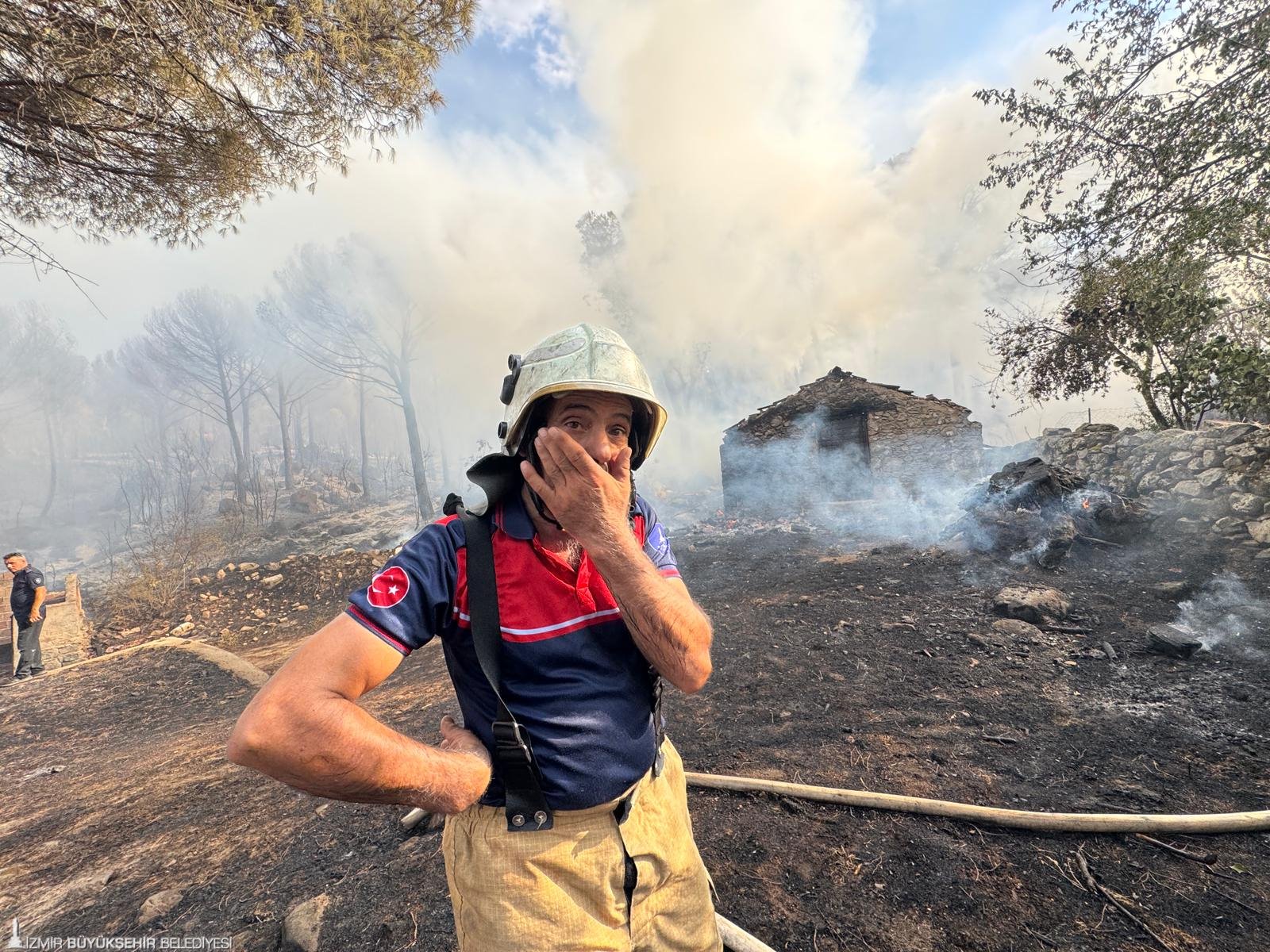 İzmir’in Bergama ilçesine bağlı Demircidere Mahallesi’nde bugün saat 15.30 sıralarında orman yangını çıktı. Şiddetli rüzgarın etkisiyle hızla yayılan alevler, Yukarıbey Mahallesi’ne de ulaşarak evlere sıçradı. İlk belirlemelere göre 3 evin hasar gördüğü yangına, İzmir Büyükşehir Belediyesi İtfaiye Dairesi Başkanlığı ekipleri 4 araç ve 12 personel ile Orman Bölge Müdürlüğü ekipleri de havadan ve karadan çok sayıda araç ve personelle müdahale ediyor. Yine İzmir Büyükşehir Belediyesi’nin muhtarlara dağıttığı su tankerleri ve orman gönüllüleri yangını söndürme çalışmalarına destek oluyor.