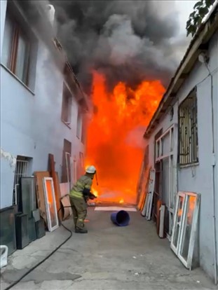 Bugün saat 11.40 sıralarında Konak ilçesi 1. Kadriye Mahallesi’nde hurdalık ve kaynak atölyesi olarak kullanılan iş yerinde yangın çıktı. Alevler kısa sürede büyüyerek çevrede bulunan 5 eve sirayet etti. İhbar üzerine 11 araç 33 personel ile olay yerine giden İzmir Büyükşehir Belediyesi İtfaiye Dairesi Başkanlığı ekipleri, yoğun çalışmalar sonucu yangını 1 saatte kontrol altına aldı. Yangında 1 itfaiye eri dumandan etkilenerek hastaneye kaldırılırken, 3 evin tamamen 2 evin kısmen yandığı belirlendi. Bölgede soğutma çalışmaları devam ediyor.