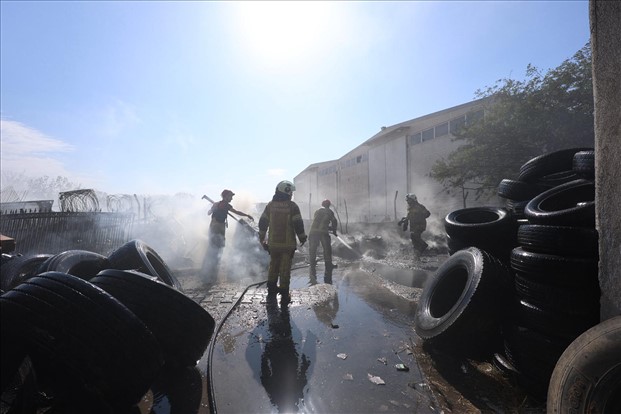 İzmir Büyükşehir Belediyesi İtfaiye ekipleri, İzmir Çanakkale Yolu Helvacı Kavşağında bulunan bir lastik deposunun çevresinde çıkan yangına müdahale etti. Yangın, işletmeye sıçramadan kontrol altına alındı.