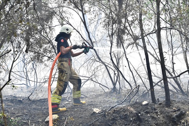 İzmir’in Menderes ilçesinde öğle saatlerinde başlayan orman yangını, rüzgârın da etkisiyle kısa sürede geniş bir alana yayıldı. Yangına İzmir Büyükşehir Belediyesi İtfaiye ekipleri ile İzmir Orman Bölge Müdürlüğü ekipleri müdahale ediyor. Alevlerle mücadeleye muhtarlar ve gönüllüler de İzmir Büyükşehir Belediyesi’nin köylere dağıttığı su tankerleriyle destek veriyor.