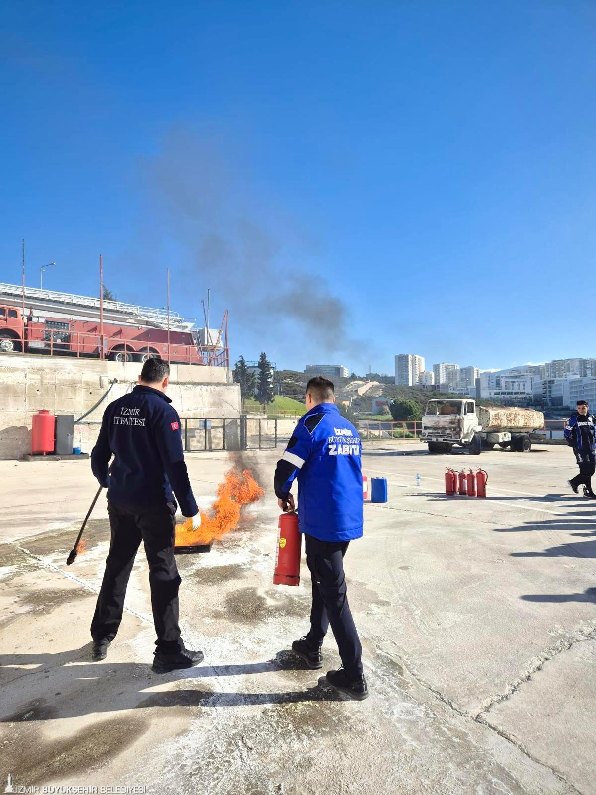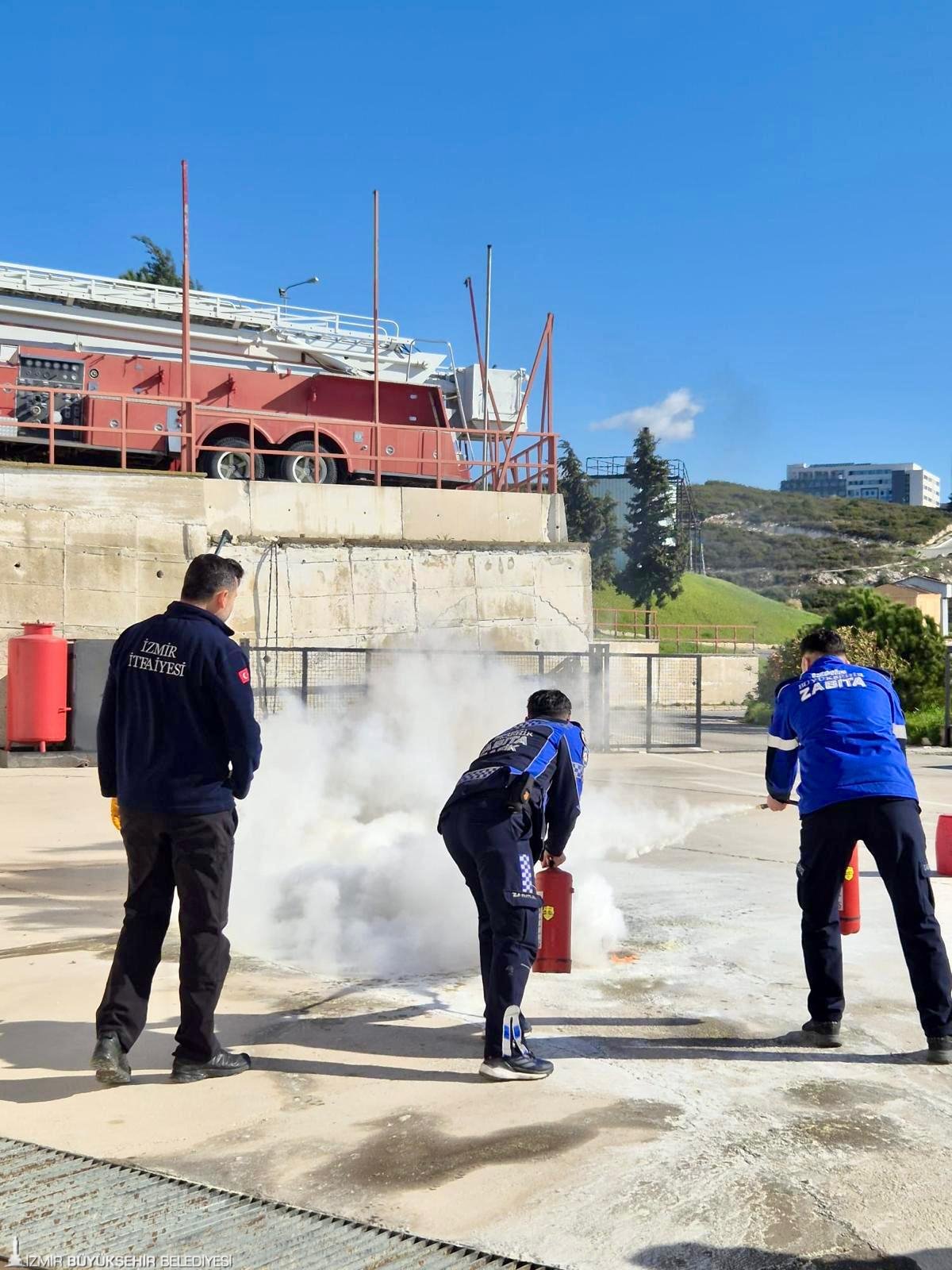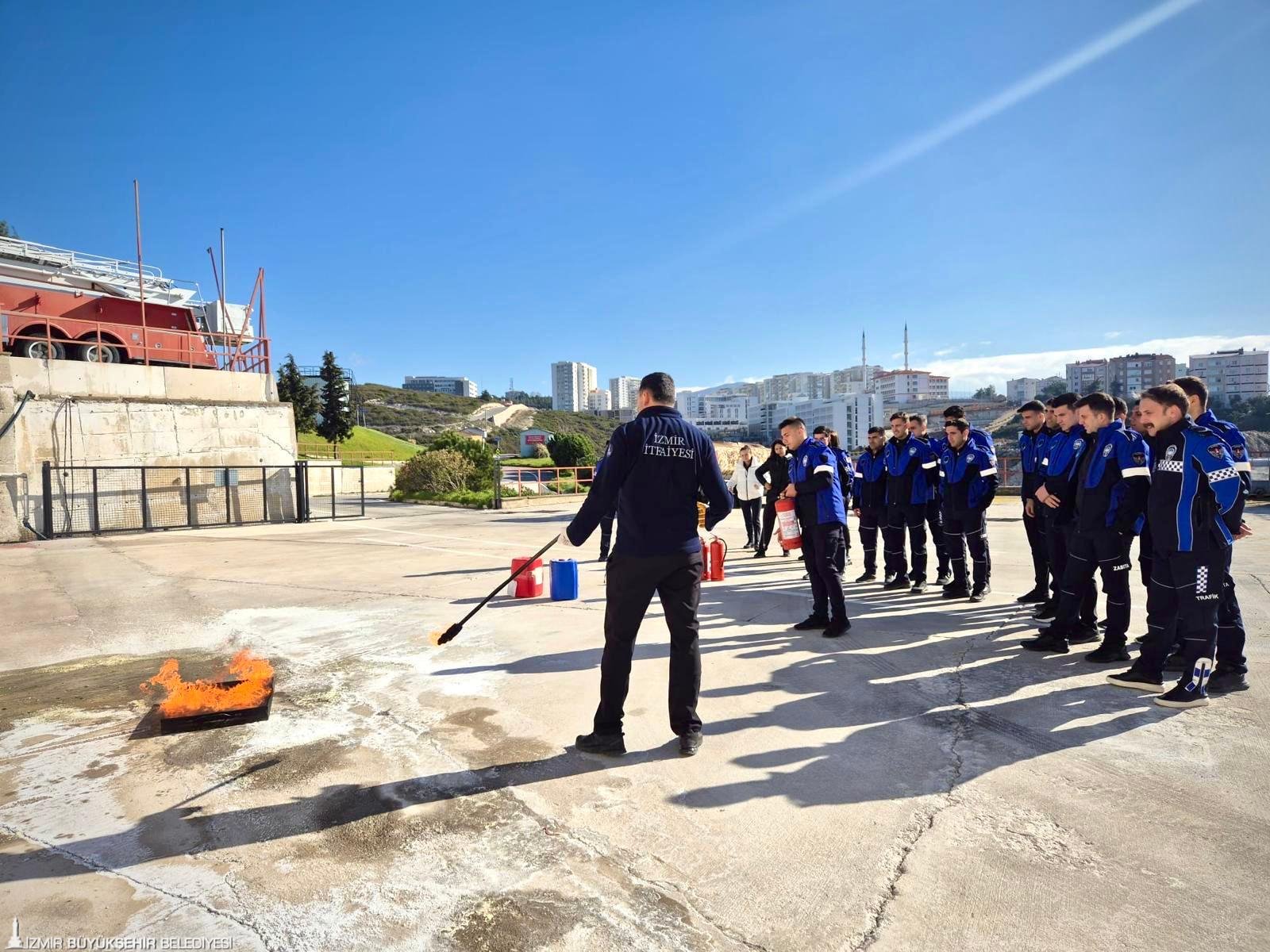 İzmir Büyükşehir Belediyesi Zabıta Dairesi Başkanlığı ekiplerine, yangın güvenliği eğitimi verildi. İzmir Büyükşehir Belediyesi İtfaiye Dairesi Başkanlığı Eğitim Şube Müdürlüğü’nde görevli eğitmenlerce, Toros Yangın ve Doğal Afet Eğitim Merkezi'nde verilen eğitimde zabıta personeli yanma ve yangın bilgisi, yangın yerindeki tehlikeler, söndürme maddeleri ve teknikleri gibi konularda bilgi sahibi oldu. 2 saat teorik, bir saat uygulamalı eğitimde zabıta personeline yangın söndürme tatbikatı da yaptırıldı.