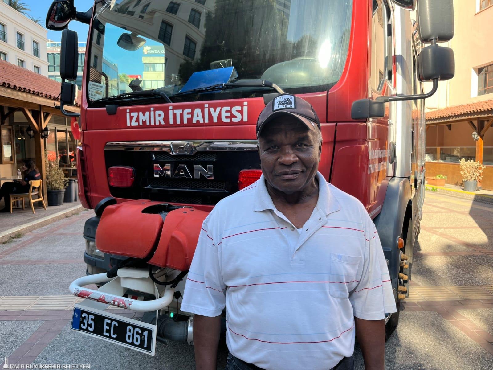 65 yaşındaki Afrika kökenli Türk Hasan Karakaya da 30 yıl boyunca İzmir İtfaiyesi bünyesinde şoför olarak görev yaptı. Mesleği çok özlediğini ifade eden Karakaya, “Görev yaparken beni görenler çok şaşırıyordu. Onlara, 1997’de Amerika’dan gelen itfaiye araçlarının yanında promosyon olarak geldiğimi söylüyordum.” dedi.