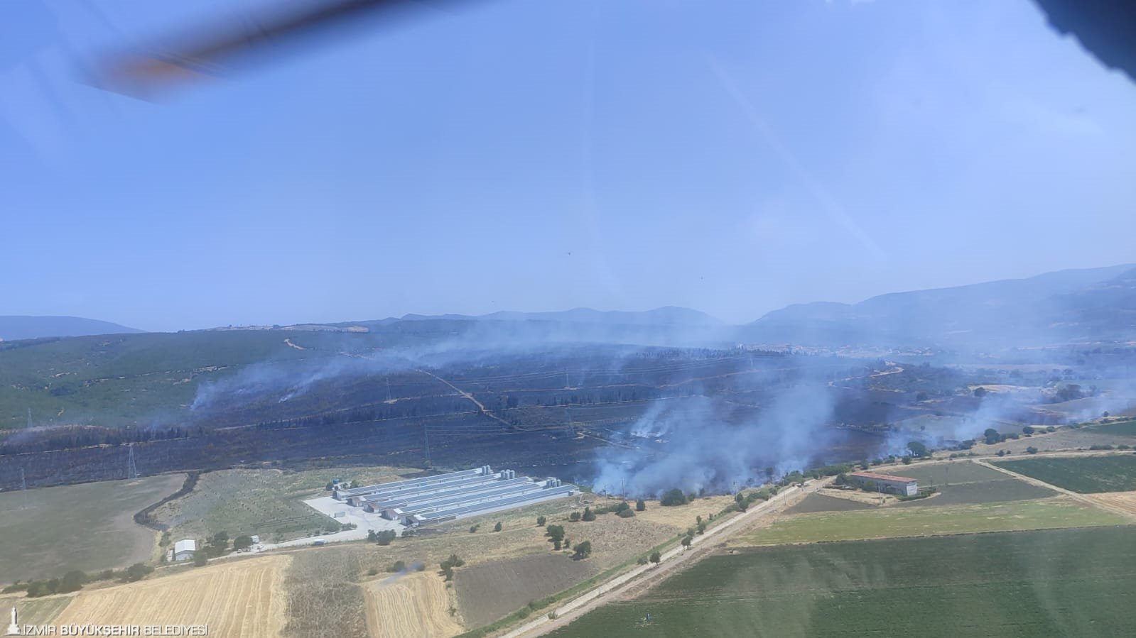 Kınık Hamzahocalı Mahallesi’nde başlayan orman yangınını kontrol altına almak için de çalışmalar sürüyor. İzmir Orman Bölge Müdürlüğü bölgede 5 uçak, 7 helikopter, 28 arazöz, 10 su ikmal, 3 dozer ile yangına müdahale ediyor. İzmir Büyükşehir Belediyesi İtfaiye Dairesi Başkanlığı ekipleri de karadan çalışmalara destek veriyor.