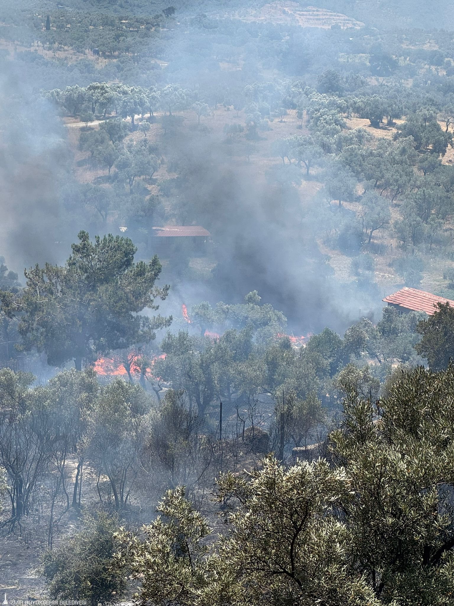 İzmir Büyükşehir Belediyesi İtfaiye Dairesi Başkanlığı ekipleri ile İzmir Orman Bölge Müdürlüğü ekipleri, farklı noktalarda başlayan yangınları kontrol altına almak için yoğun mesai harcıyor. Ekipler Torbalı’da öğle saatlerinde başlayan yangına müdahale etti. Karaot Köyü’ndeki hobi bahçelerinde kaynak çalışması sırasında çıktığı tahmin edilen yangın, kısa sürede büyüdü. İzmir Büyükşehir Belediyesi tarafından köylere dağıtılan su tankerleri ile ilk müdahalenin yapıldığı yangına, İzmir İtfaiye Dairesi Başkanlığı Çaybaşı ve Torbalı grupları da destek verdi. Hobi bahçesindeki bir yapının yandığı yangında, 100 dönüme yakın zeytinlik alan da zarar gördü. Yangın, ekiplerin yoğun müdahalesinin ardından kontrol altına alındı.