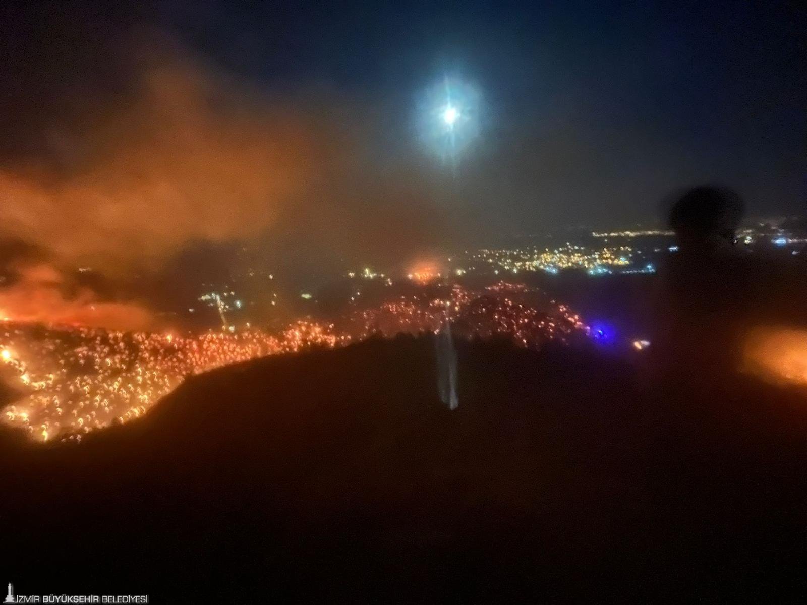 İzmir'de Karşıyaka Yamanlar Dağı'nda 15 Ağustos akşamı başlayan ve rüzgarın etkisiyle büyüyen orman yangınını sönürme çalışmaları sürüyor. 700'ün üzerinde itfaiye personeli ve yüzlerce araçla sahada olan İzmir İtfaiyesi, Bayındır, Tire ve Çeşme'de çıkan yangınlara da müdahale etti. Bayındır'da dün akşam saatlerinde başlayan Canlı, Elifli, Yeşilova ve Söğütören civarını etkileyen yangında Orman Bölge Müdürlüğü ekiplerine destek veren İzmir İtfaiyesi, 19 araç, 14 tanker ve 55 personel ile yangını kontrol altına almak için çalışıyor. Yangın orman, makilik ve zeytin ağaçlarının bulunduğu tarım alanlarını etkiliyor. Diğer illerden gelen itfaiye ekipleri de yangının söndürülmesi için mücadele veriyor. Yangından etkilenmemesi için bölgedeki ahıllar boşaltıldı.
