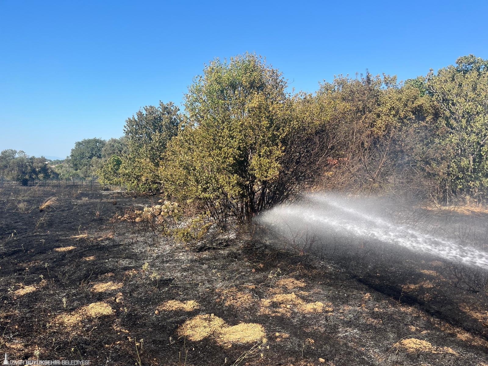 Ekipler, Urla Kekliktepe’de otluk alanda çıkan yangına da 5 arazöz, 1 tonaj ve İZSU’dan 2 su tankeri ile müdahale etti. Yangın, ekiplerin çabasıyla kontrol altına alındı.