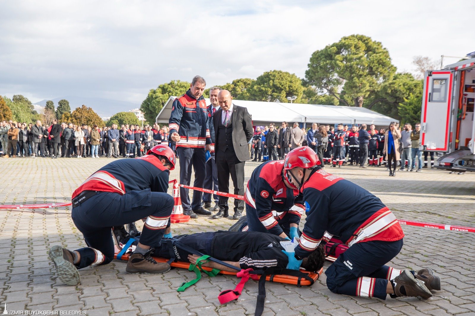Törende konuşan İzmir Büyükşehir Belediye Başkanı Tunç Soyer acil sağlık hizmetlerinde bir devrim başlattıklarını ifade ederek, “Bu çalışmamız İzmir İtfaiyesi’nin kahraman personelinin fedakar çalışmaları ve yoğun bir gayretin ürünü. Canları pahasına can kurtaran, bu kutsal görevi ifa eden her birinin önünde saygıyla eğiliyorum. 112 AKS Ambulans Sistemi’mizle, dört buçuk milyon İzmirlinin can güvenliğini teminat altına alan yepyeni bir sistem kurduk. Afetlerde, acil durumlarda, kazalarda temel ve ileri yaşam desteği uyguladığımız bu sistem, kazazede vatandaşlarımızın bütün ihtiyaçlarına cevap veren tam teşekküllü bir sağlık hizmetini içeriyor” dedi.
