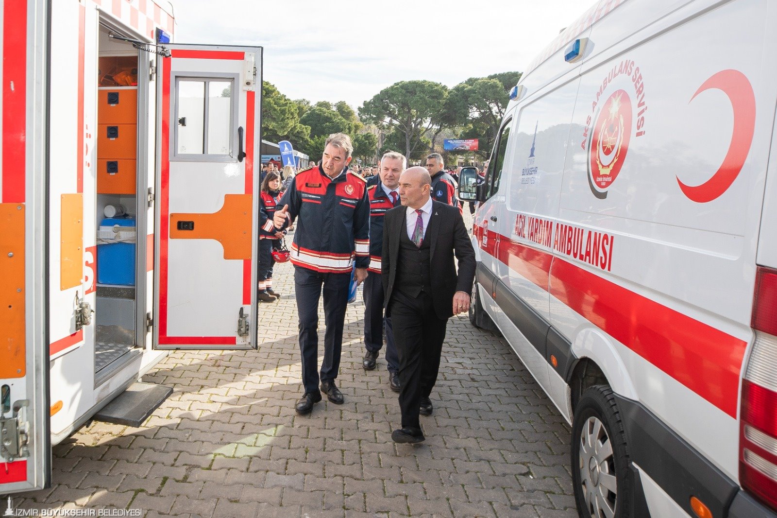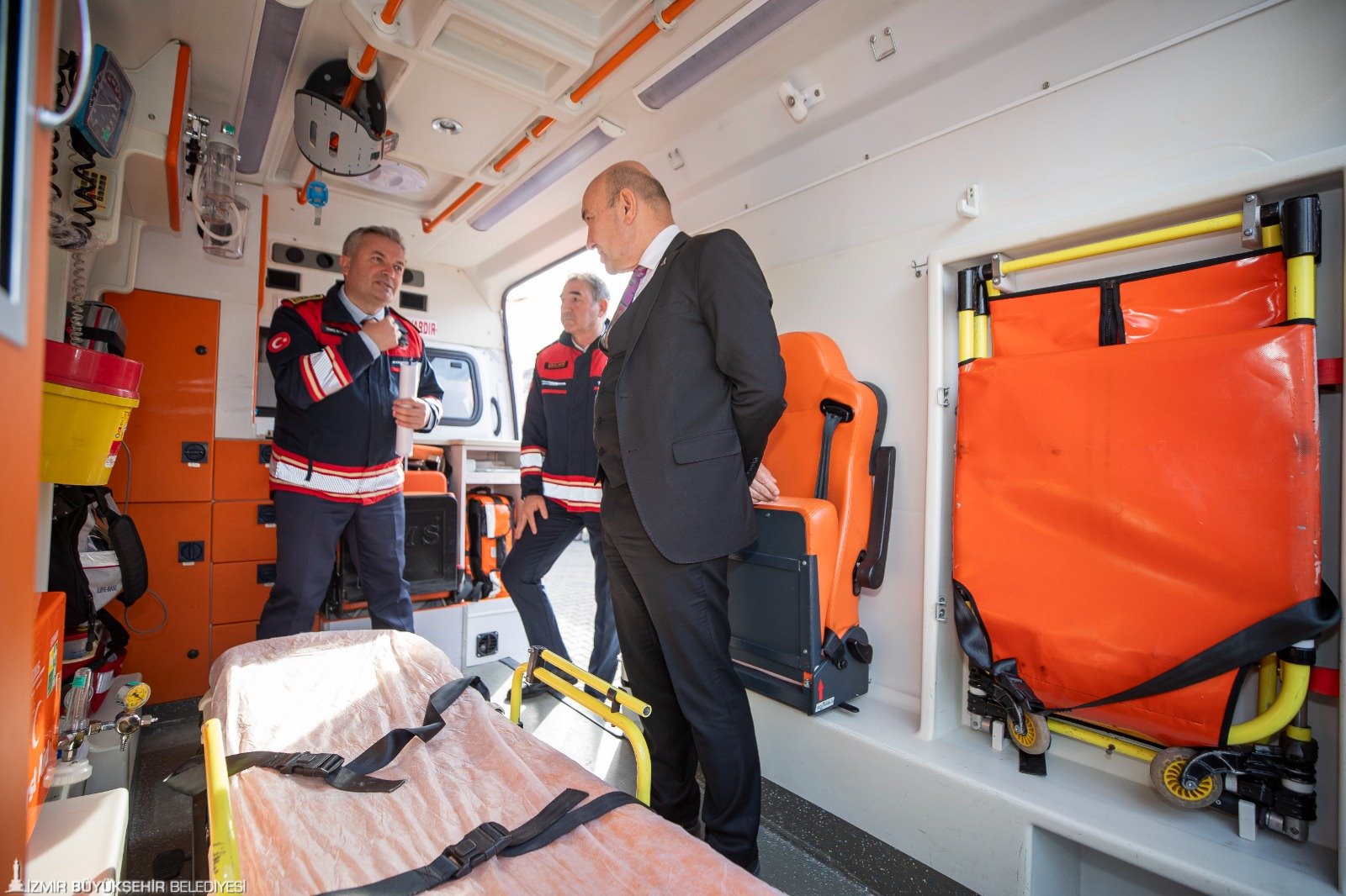 Ambulansları inceleyen Soyer, “İzmirlilerin içi rahat etsin. Kendilerini güvende hissetsinler. Olmamasını diliyoruz ancak başa gelecek bir felaket anında en hızlı çözümü yaratacak ekiplerimiz, ekipmanları ile hazır durumdalar” ifadelerini kullandı.