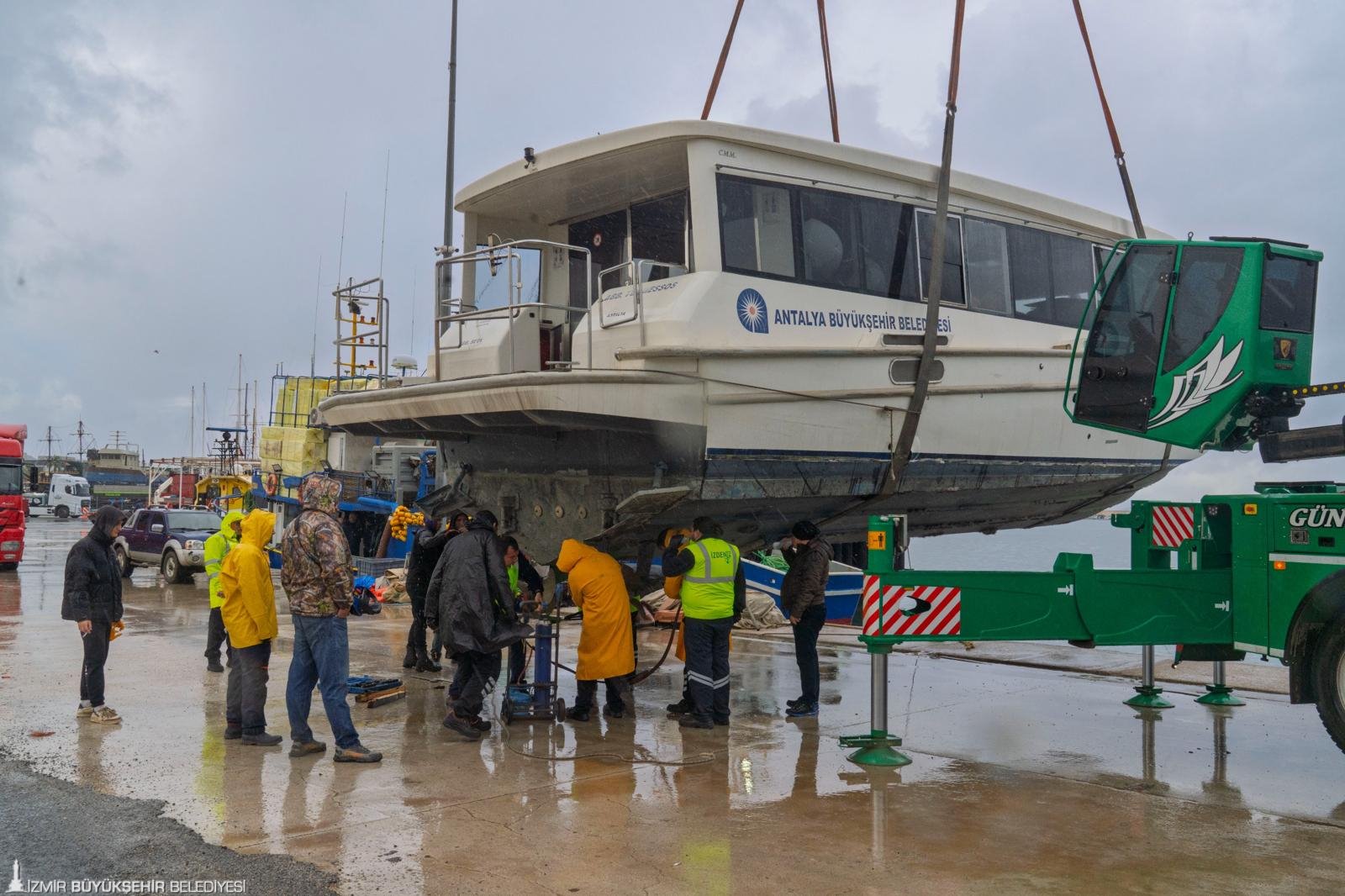 İzmir Büyükşehir Belediyesi, deniz ulaşımını güçlendirmek amacıyla Antalya Büyükşehir Belediyesi ile yapılan iş birliği kapsamında üç deniz dolmuşunu kente kazandırdı. Kiralanan, 42 yolcu kapasiteli deniz dolmuşları Güzelbahçe Balıkçı Barınağı’na indirildikten sonra İzmir Marina’ya çekildi. İzmir Marina’da gerekli bakım ve kontrolleri yapılacak olan deniz dolmuşları, körfez içi ulaşıma dâhil olmaları için yürütülen bürokratik işlemlerin tamamlanmasının ardından hizmet vermeye başlayacak. Deniz dolmuşlarıyla, yolcu yoğunluğunun düşük olması nedeniyle işletilemeyen hatların yeniden aktif hâle getirilmesi hedefleniyor. Ara saatlerde yolcu sayısının uygun olduğu hatlarda küçük kapasiteli ve hızlı deniz araçlarıyla hizmet sunulacak. Kapasite çeşitliliği sayesinde personel ve yakıt tasarrufu sağlanırken, çevreci küçük araçlarla karbon salınımının azaltılması amaçlanıyor. Deniz dolmuşlarının yanaşacağı platformların yapım çalışmaları ise sürüyor.