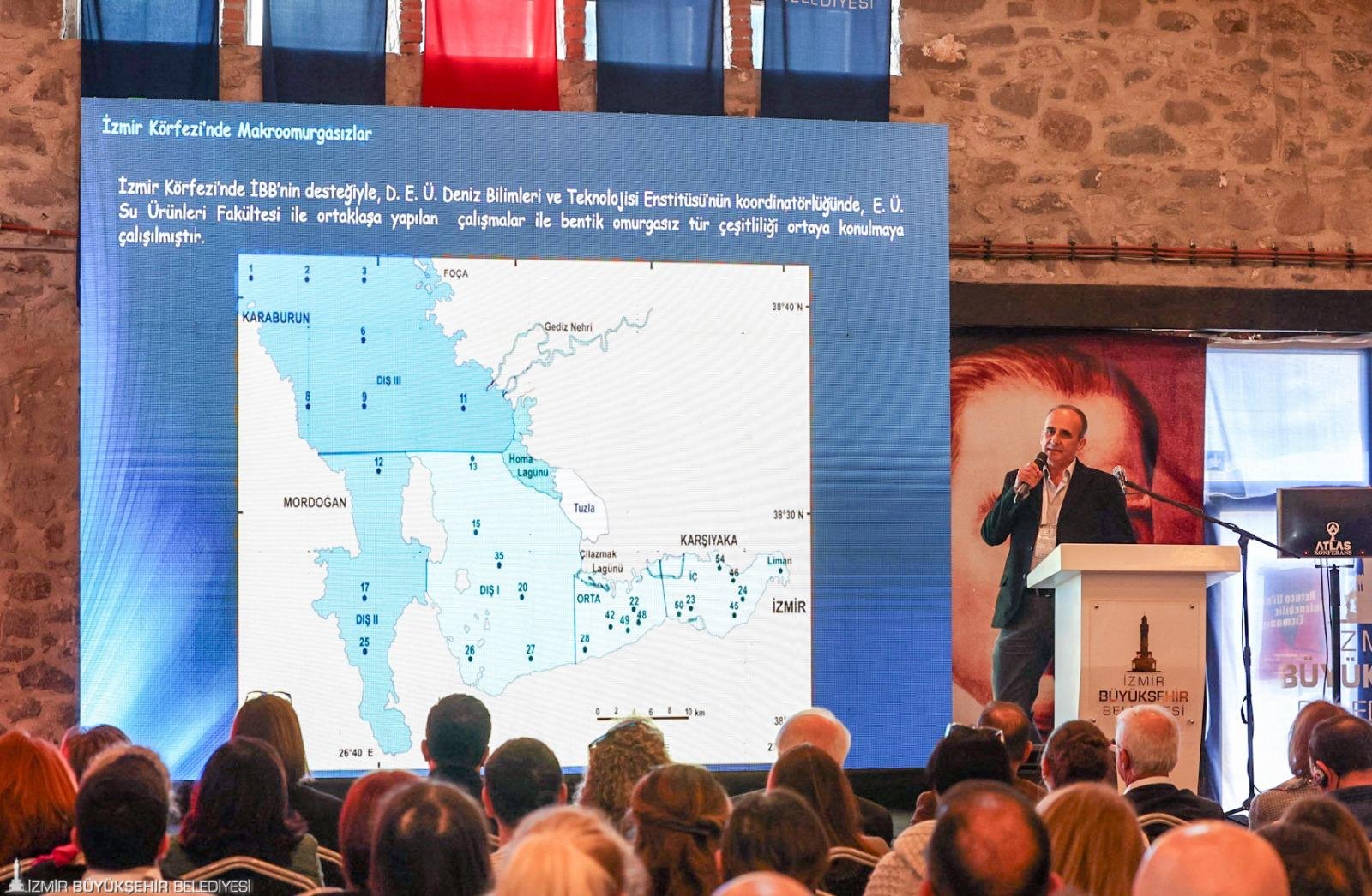 Ege Üniversitesi Su Ürünleri Fakültesi'nden Doç. Dr. Ertan Dağlı, İzmir Körfezi'ndeki makroomurgasızlar hakkında bilgilendirmede bulundu. Dağlı, nüfus arttıkça sıkıntıların tekrar gündeme geldiğini kaydetti. Ege Üniversitesi Su Ürünleri Fakültesi'nden Prof. Dr. Zafer Tosunoğlu, İzmir Körfezi balıkçılığına genel bakış konulu sunum yaptı. 1982 yılında Güzelyalı – Bostanlı hattının içinde kalan, sonrasında ise İnciraltı – Bostanlı arasında kalan iç körfezde avlanmanın yasak olduğunu söyleyen Tosunoğlu, körfezde yaşanan balık ölümlerinin balık ticaretini de etkilediğini ifade etti. Tosunoğlu, sürdürülebilir balıkçılığa geçilmesi gerektiğinin altını çizdi.