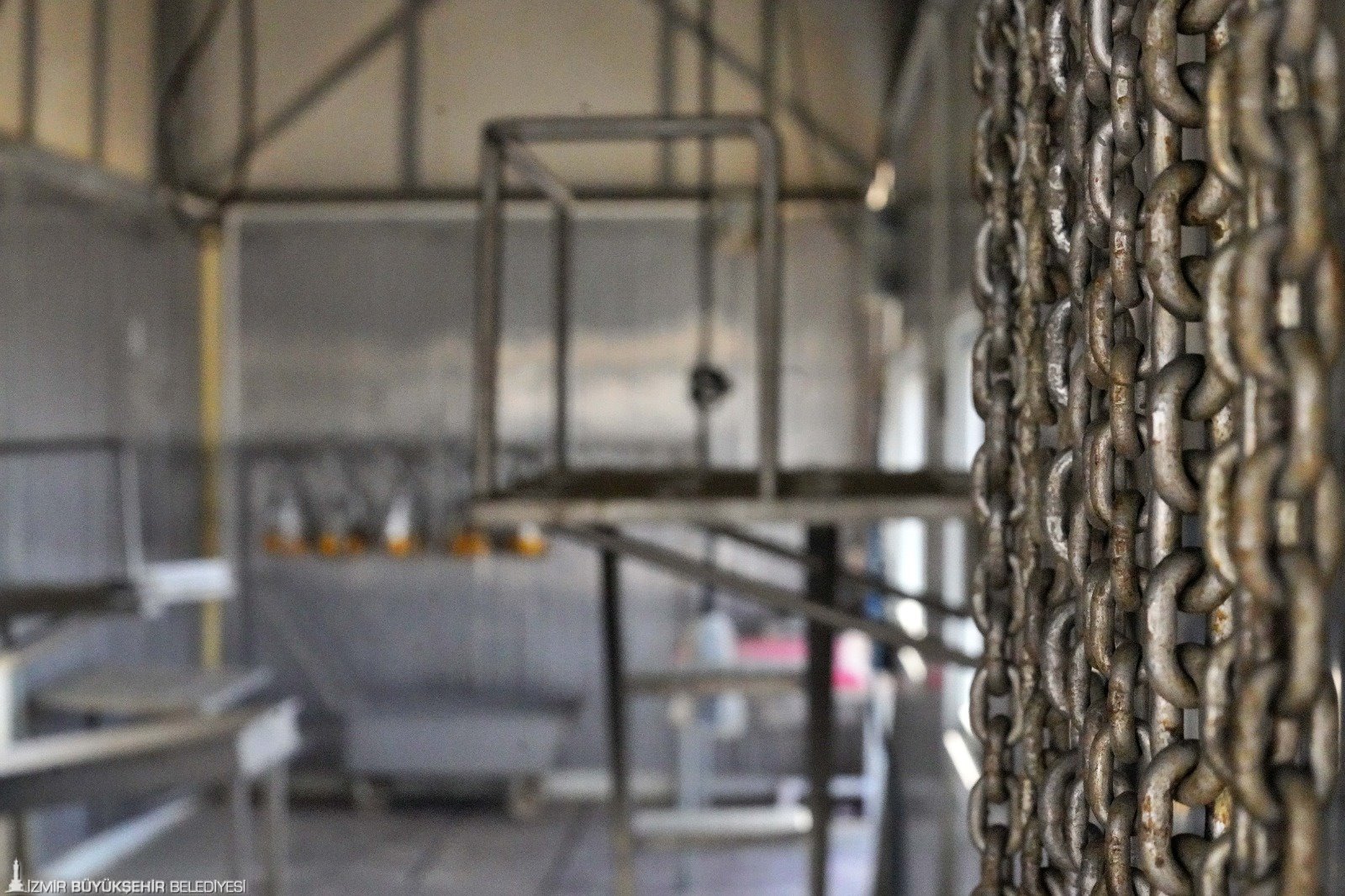 İzmir Büyükşehir Belediyesi, 3 metre genişliğinde, 13 metre uzunluğunda ve 6 metre yüksekliğindeki konteynerlerde kesim hizmeti sunacak. Monoray üzerinde mezbaha standartlarında kurulan ünitelerde, eğitimli kasaplar tarafından günlük 100 büyükbaş hayvan kesimi yapılabilecek. Kesim için konteynere giren kurbanlıklar en fazla 7 parça halinde gıda poşetleri içinde yurttaşlara teslim edilecek.