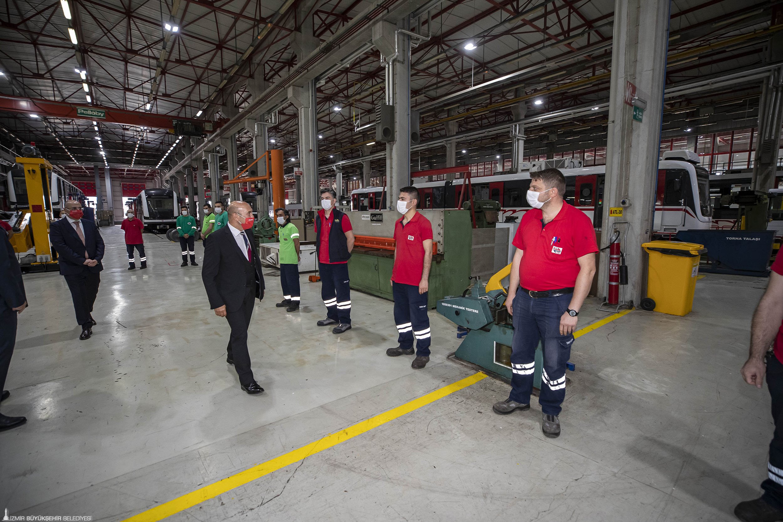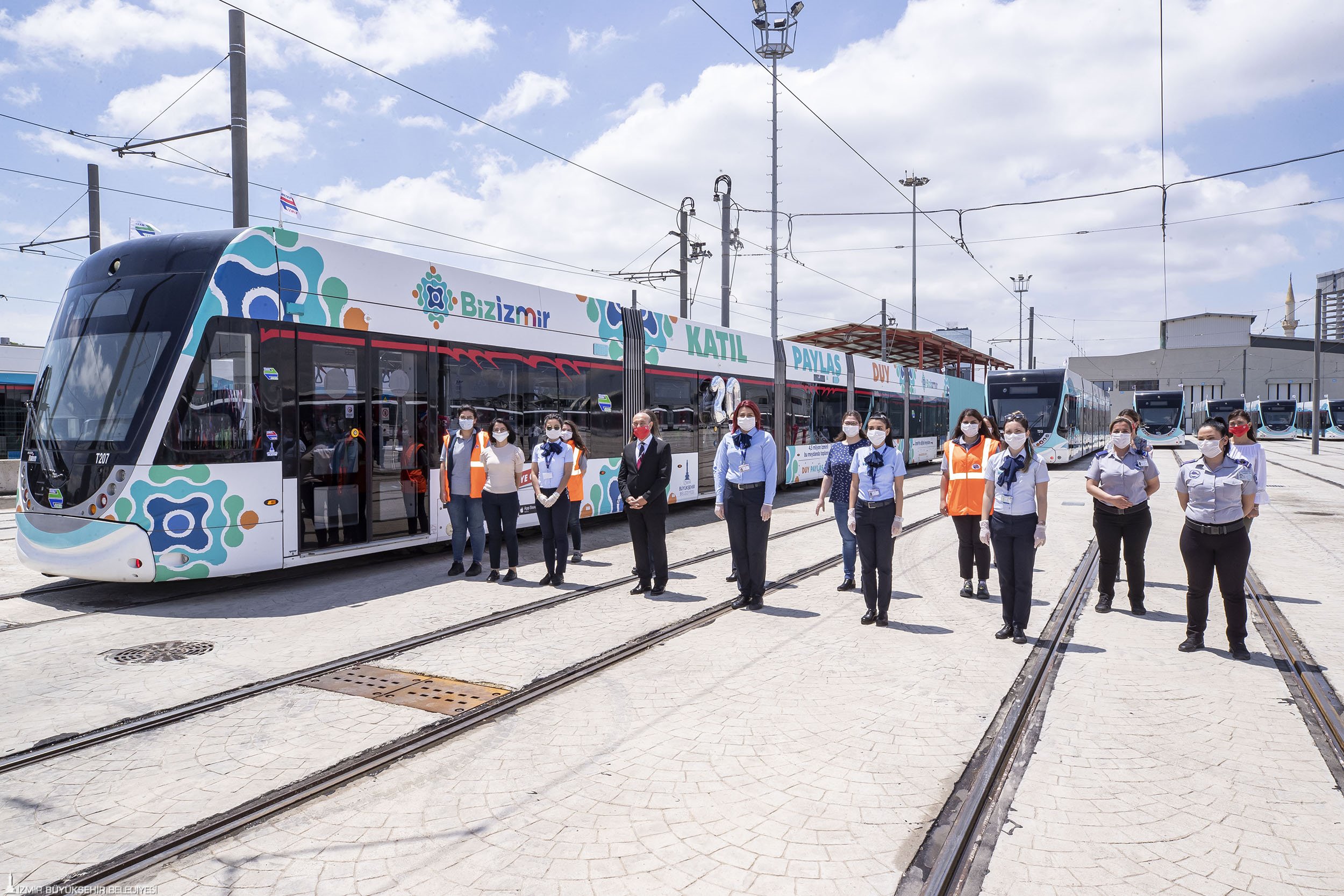 İzmir Metro ve İzmir Tramvay salgın sürecinde de çalışmayı sürdürüyor. Salgın sürecindeki ek güvenlik önlemleri kapsamında tüm araç filosunda her gün temizlik sonrası dezenfekte işlemi yapılıyor. Yine tüm istasyonlarda ve duraklarda dezenfeksiyon işlemleri periyodik olarak uygulanmaya devam ediyor. Fırçalı yıkama ünitesinde otomatik olarak dış temizlikleri yapılan araçların iç temizlikleri, kokusuz, insan sağlığına, çevreye ve vagon donanımlarına zarar vermeyen temizlik malzemeleri kullanılarak gerçekleştiriliyor. Tüm araçlar bu işlemlerden geçtikten ve kontrol edildikten sonra tren işletimine veriliyor. İşletim boyunca her seferin tamamlanmasının ardından temizlenen ve dezenfekte edilen araçlar, İzmirlilerin hizmetine sunuluyor. “20 yıldır bekliyoruz, bekletmiyoruz” sloganıyla hizmet veren İzmir Metrosu’nda, sürücüden temizlik çalışanlarına kadar tüm personel, güvenli, konforlu, düzenli ve hijyenik hizmet için 7 gün 24 saat görev yapıyor.