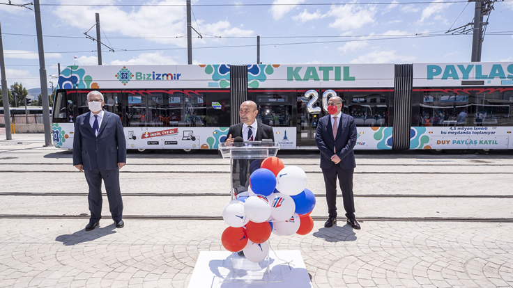 20 yıl önce, 10 istasyonun bulunduğu 11.5 kilometrelik hat uzunluğuyla hizmete başlayan İzmir Metrosu, bugün bünyesindeki Konak ve Karşıyaka tramvaylarıyla birlikte toplam 41 kilometrelik hatta, her gün ortalama 500 bin yolcu taşıyor. İzmir Metrosu ve İzmir Tramvayı, kentte toplu ulaşımın yüzde 24’ünü karşılıyor. 2000 yılında 45 araçla işletmeye başlayan İzmir Metrosu, geçen süreçte yeni metro araçlarının ve tramvay araçlarının da dahil edilmesiyle 220 araçlık dev bir filoya sahip oldu. Geçen 20 yılda dünya nüfusunun 8’de 1’ine denk gelen 1 milyar 164 bin yolcu taşındı. İlk günden bu yana yapılan 36 milyon kilometre uzunluğundaki sefer toplamı ise dünyanın etrafını 903 kez dolaşmaya eşdeğer.