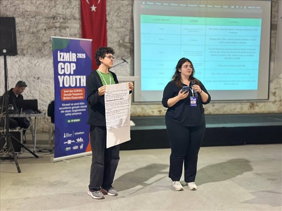 23 Nisan 2026 Perşembeİzmir Büyükşehir Belediyesi, Türkiye’nin ev sahipliğinde 9-20 Kasım tarihlerinde düzenlenecek COP31 öncesinde gençlerin iklim politikalarına doğrudan katkı sunduğu öncü bir buluşmaya ev sahipliği yaptı.