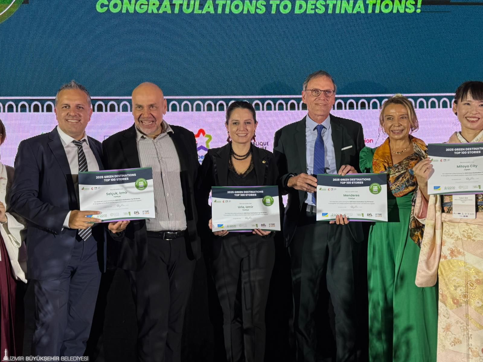 İzmir Büyükşehir Belediyesi, 2024 Yeşil Destinasyonlar En İyi 100 Hikaye (Green Destinations Top 100 Stories) yarışmasında başarılar kazanmaya devam ediyor. İzmir Büyükşehir Belediyesi Kültür ve Sosyal İşler Dairesi Başkanlığı Turizm Şube Müdürlüğü’nün Selçuk, Urla, Menderes belediyeleri ve paydaşlarla yaptığı çalışmalar sonucunda “En İyi 100 Hikaye” yarışmasında 3 destinasyon ödül kazandı. 2023 yılında Efeler Yolu, 2024 yılında Urla Bağ Yolu’nun yer aldığı “En İyi 100 Hikaye” listesinde 2025 yılında 3 destinasyon ile yer alan İzmir, sürdürülebilir turizm alanındaki başarılarını artırarak devam etmiş oldu. Green Destinations Uluslararası Konferansı kapsamında düzenlenen ödül töreninde, destinasyonlara sertifikaları teslim edildi. Ödül törenine Selçuk Belediye Başkanı Filiz Ceritoğlu Sengel, Urla Belediye Başkanı Selçuk Balkan, İzmir Büyükşehir Belediyesi Turizm ve Fuarcılık Komisyonu Başkanı Seyhan Müşerref Kuralı ve bürokratlar katıldı.