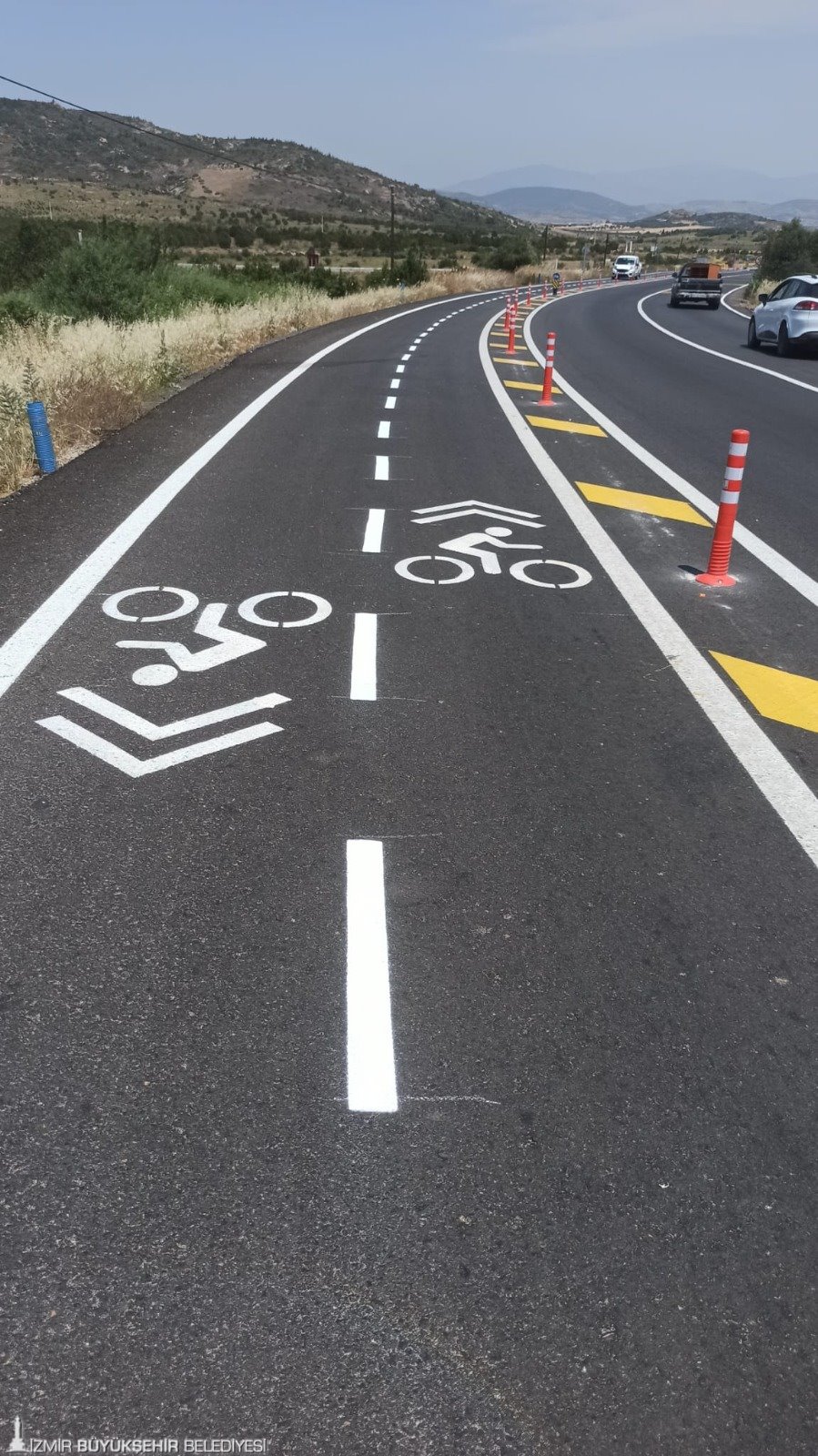 İzmir Büyükşehir Belediyesi, kent içinde güvenli ve konforlu ulaşımı sağlayabilmek için trafik bakım, onarım ve düzenlemelerine aralıksız devam ediyor. İzmir Büyükşehir Belediyesi Ulaşım Dairesi Başkanlığı Trafik Hizmetleri Şube Müdürlüğü tarafından yürütülen çalışmalar kapsamında İzmir’in yollarında yatay ve düşey trafik işaretleri geliştirildi. Sahada eksik ve onarılması gereken noktaları tespit eden ekipler, bu yıl 6 bin 286 adet trafik levhasının montajını tamamladı, 86 bin 238 metrekarelik trafik çizgisi çekti. Ekipler bu yılın sonuna kadar 10 bin trafik levhasının montajı ve 220 bin metrekarelik trafik çizgisi düzenlemesi yapmayı hedefliyor.