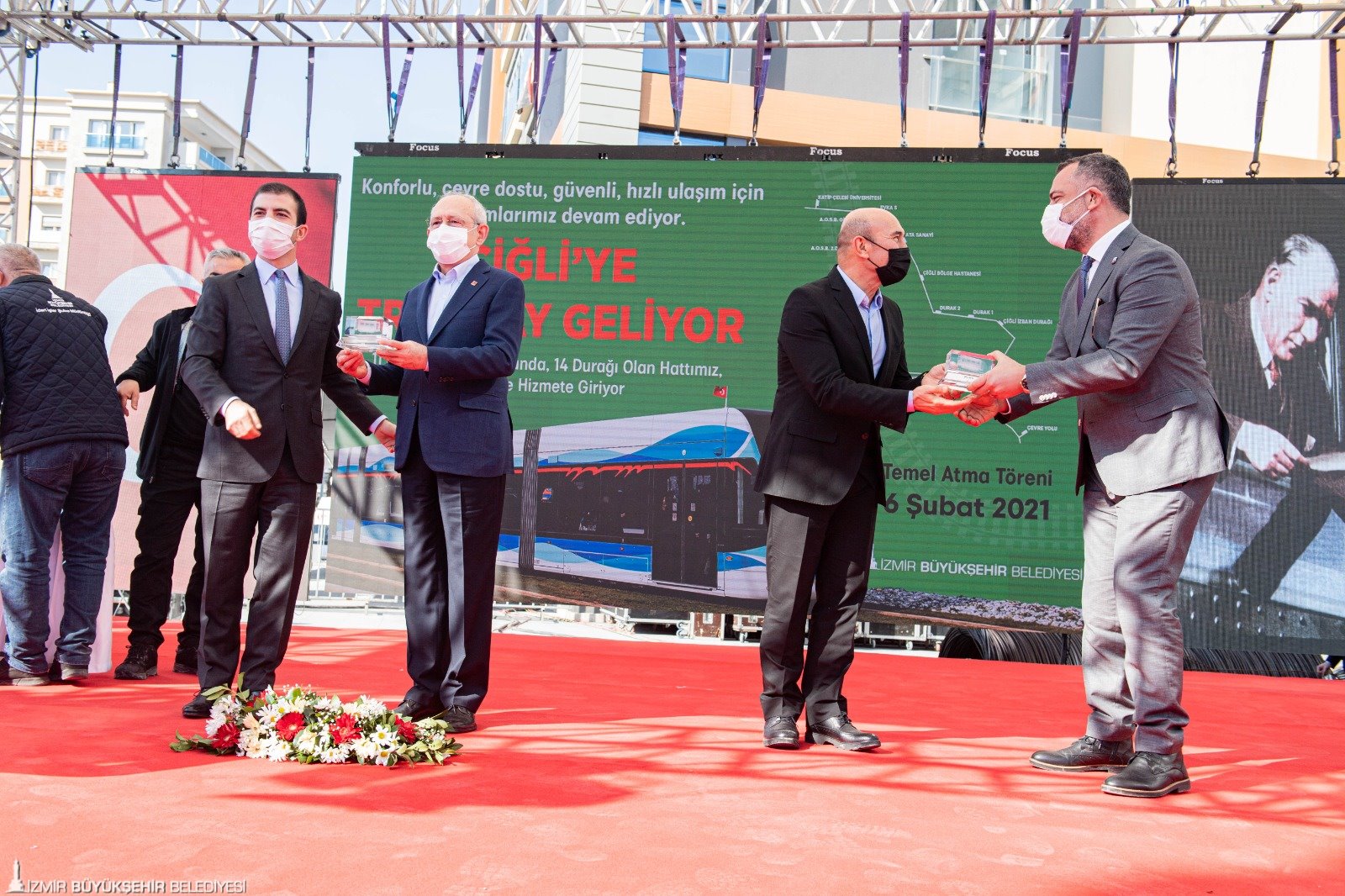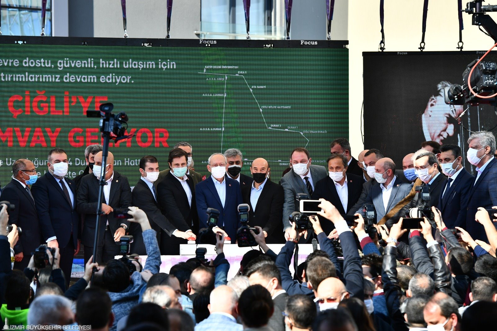 Konuşmaların ardından Çiğli Tramvay Hattı'nın temeli atıldı. Nurol İnşaat Genel Müdürü Nurettin Akdeniz CHP Genel Başkanı Kemal Kılıçdaroğlu ve İzmir Büyükşehir Belediye Başkanı Tunç Soyer'e teşekkür plaketi verdi. Törene CHP Genel Başkanı Kemal Kılıçdaroğlu ve İzmir Büyükşehir Belediye Başkanı Tunç Soyer'in yanı sıra CHP Genel Başkan Yardımcısı Seyit Torun, Ali Öztunç, CHP Parti Meclisi Üyesi ve İzmir Milletvekili Devrim Barış Çelik, CHP Parti Meclisi üyeleri Umut Akdoğan, Rıfat Nalbantoğlu, CHP İzmir milletvekilleri, CHP İl Başkanı Deniz Yücel, ilçe belediye başkanları ve meclis üyeleri katıldı.