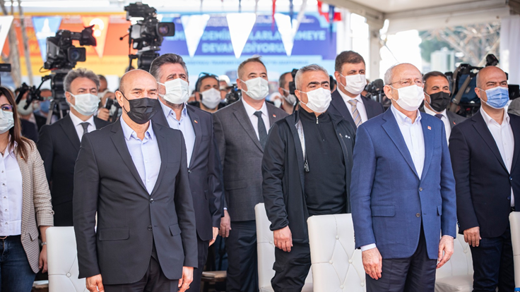 Çiğli Tramvayı Şantiyesi'nde düzenlenen törende konuşan CHP Genel Başkanı Kemal Kılıçdaroğlu, 'Martın sonu bahar" dediklerini ve bütün Türkiye'ye demokrasiyi, huzuru, birlikteliği getirmek için kararlı olduklarını söyledi. İzmir gibi çağdaş bir kentin milletvekili olmaktan son derece mutlu olduğunu dile getiren Kılıçdaroğlu, "Buraya gelmeden önce sel felaketi nedeniyle mağdur olan esnafımızı gezdik; dinledik. Dertleri var. Büyük zararlar gördüler doğru ama bu konuda belediyemiz, belediye başkanlarımız güzel çalışıyor. 2 bin 554 hane ve işyerinde sorun hasar tespitleri yapılmış vaziyette. 7 milyon 31 bin liralık maddi ve manevi yardım esnafımıza yapılacak. Pazartesi günü belediye meclisinde bu karar alınacak ve uygulamaya konulacak" diye konuştu.