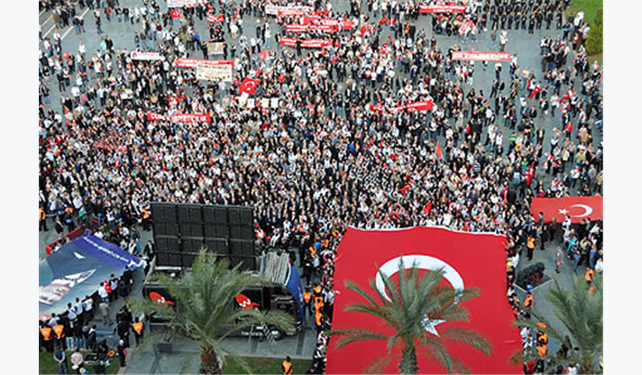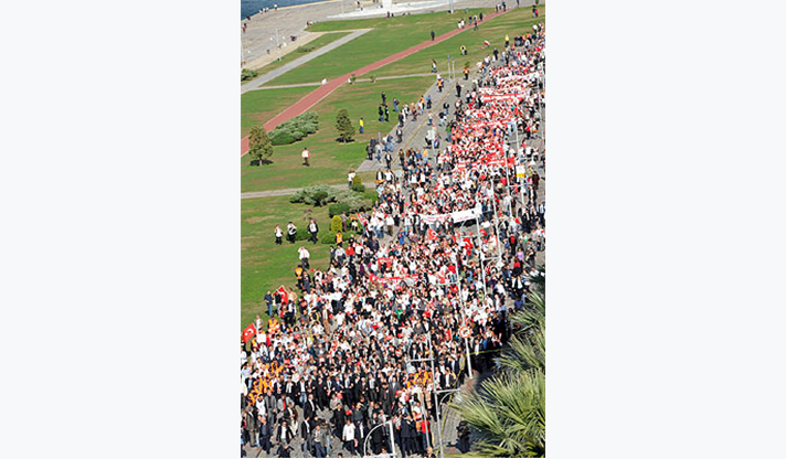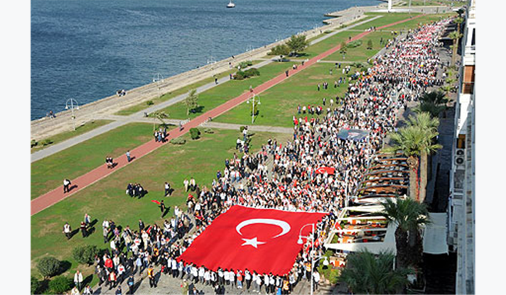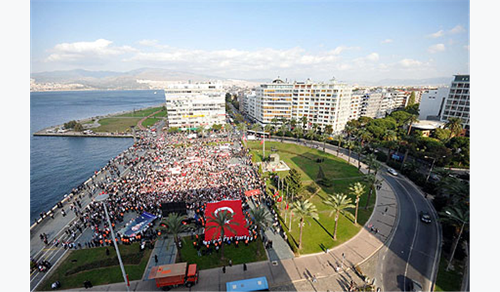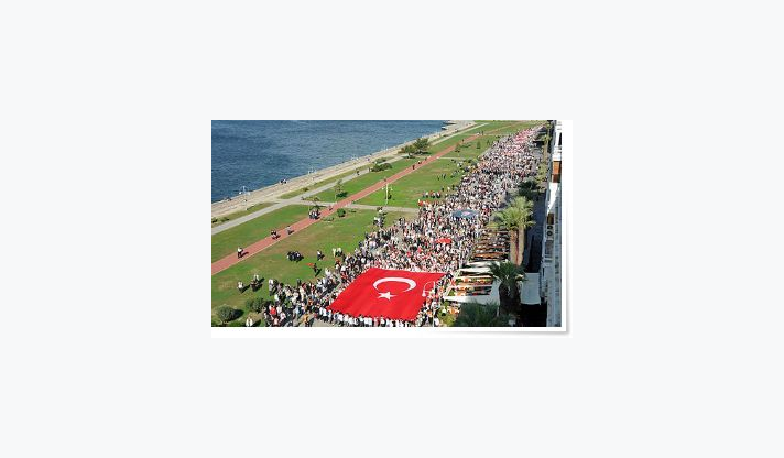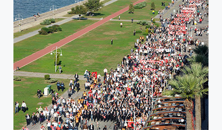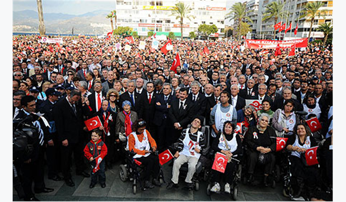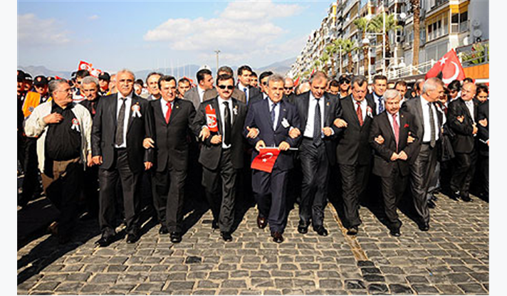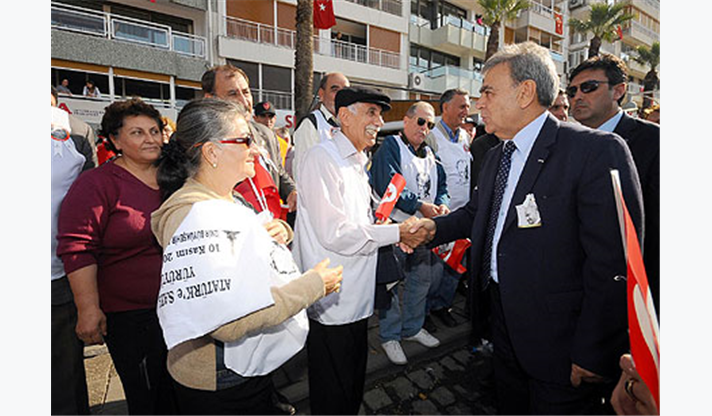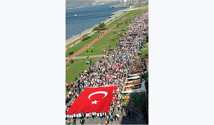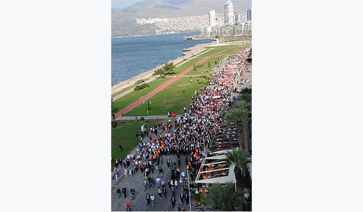 İzmir’de Büyükşehir Belediyesi’nin düzenlediği “Atatürk’e Saygı Yürüyüşü”ne katılan onbinlerce İzmirli, Ulu Önder’e olan sevgi, saygı ve özlemlerini bir kez daha gösterdi.