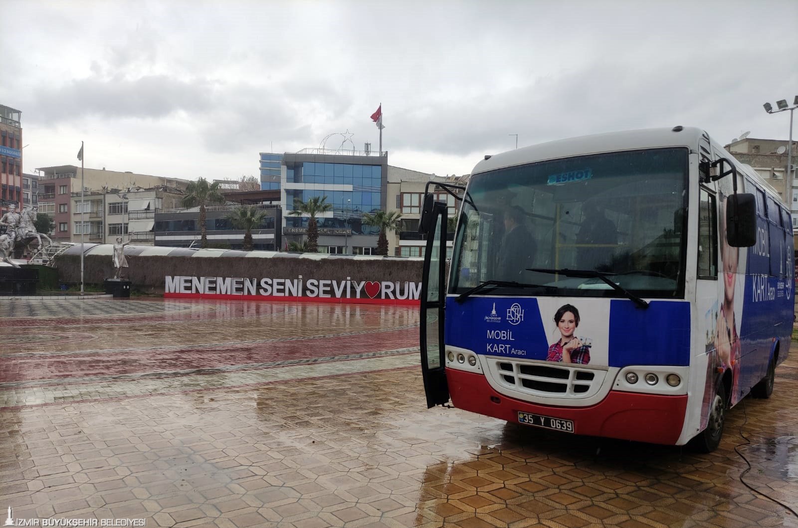 İzmir Büyükşehir Belediyesi ESHOT Genel Müdürlüğü, kentin farklı noktalarında hizmete açtığı beş yeni kişiselleştirilmiş kart başvuru merkezinden sonra, mobil hizmet aracını da devreye aldı. ESHOT atölyelerinde yapılan araç sayesinde, metropol dışındaki ilçelerde oturanların, kart almak için kent merkezine gelmesine gerek kalmayacak. Öğrenci, Öğretmen, 60 Yaş, 65 Yaş Üstü, Engelli, Gazi ve Şehit Yakını İzmirim Kartlar beş dakika içinde verilecek.