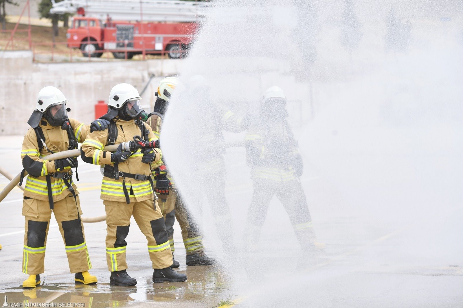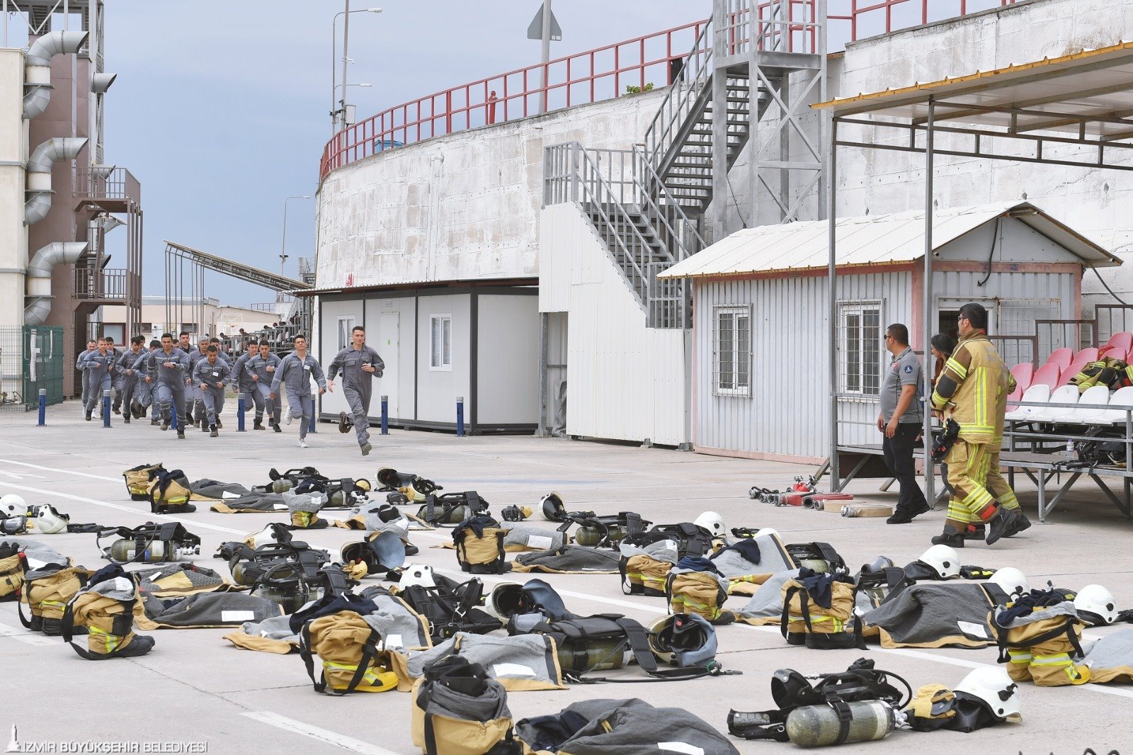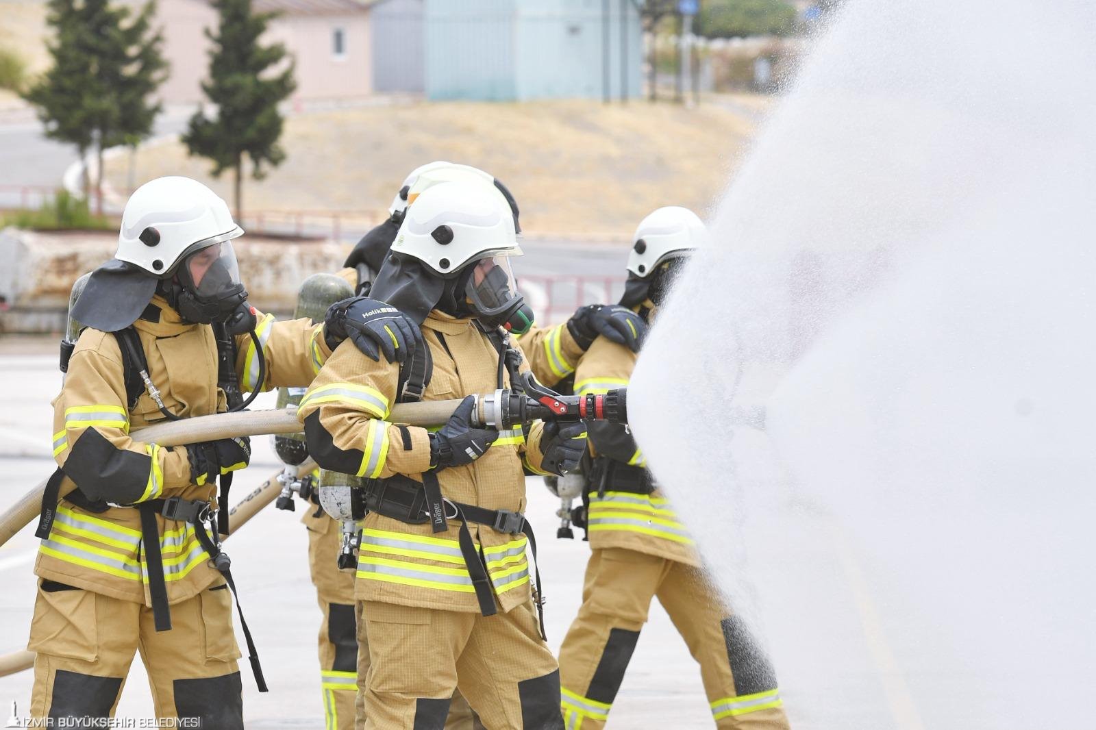 İzmir Büyükşehir Belediyesi İtfaiye Dairesi Başkanlığı'nın yeni itfaiye memurları sahaya çıkmak için gün sayıyor. 22 Nisan'da Yangın ve Doğal Afet Eğitim Merkezi’nde başladıkları eğitimlerini 7 Haziran'a kadar sürdürecek itfaiyeciler zorlu parkurlarda başarılı olmak için ter döküyor. 1 kilometre koşu, 100 metre engelli koşu, karanlık ve dumanlı odada yön bulma, itfaiye aracı ile ambulans kullanma, dağda arama kurtarma gibi uygulamalı eğitimlerden geçen genç itfaiyeciler, zorlu parkurlarda heyecan dolu anlar yaşıyor.