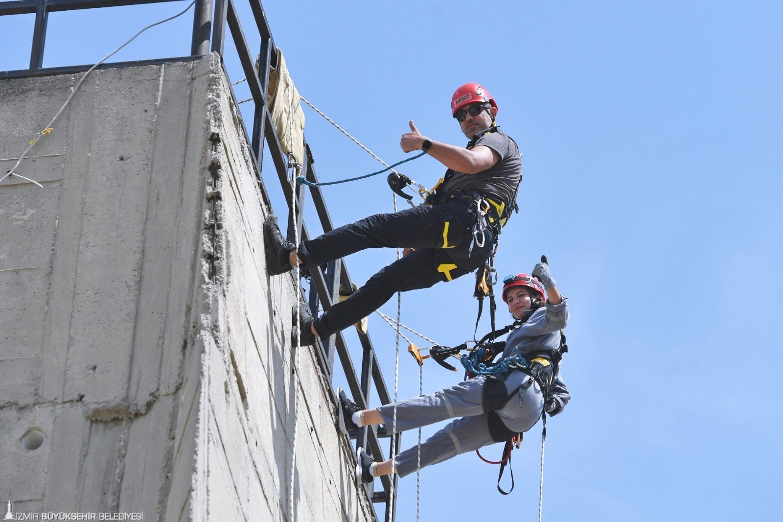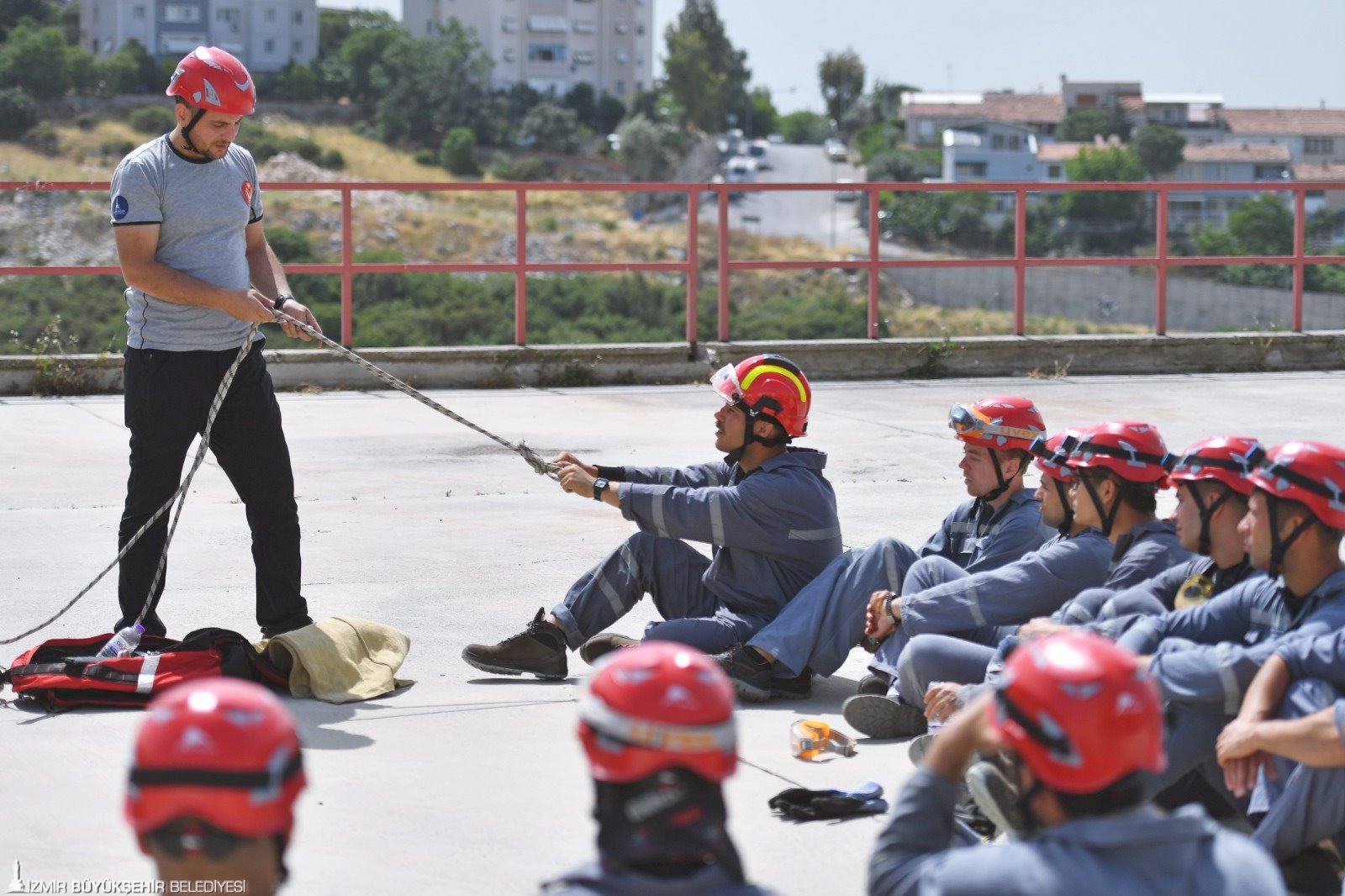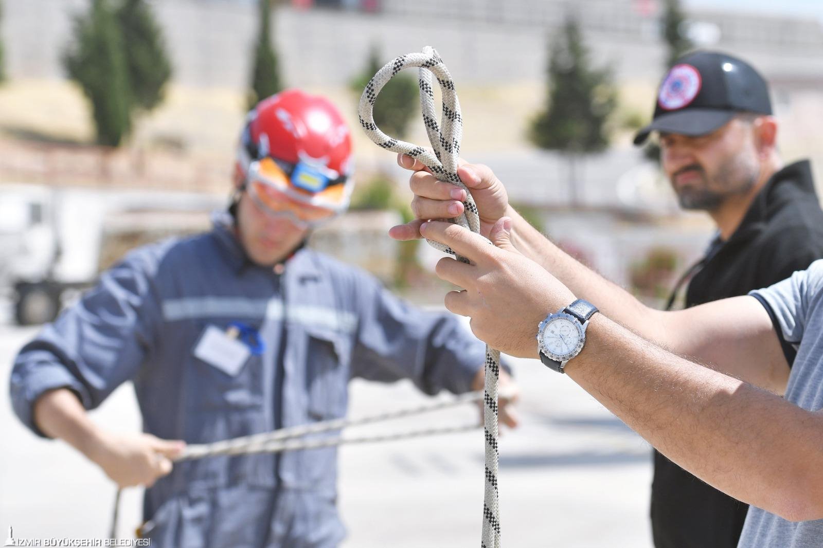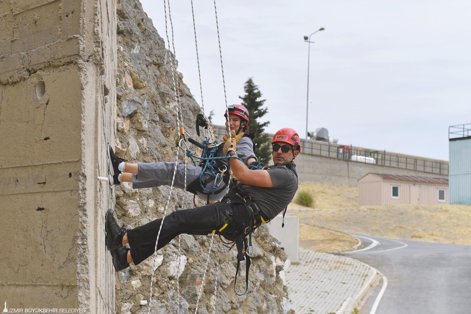 Arama Kurtarma Eğitmeni Mesut Topal, 15 metre yükseklikte, dağda iple iniş ve yukarı tırmanma eğitimi verdiği itfaiyecilerin heyecanına da ortak oluyor. Kolay bir iş yapmadıklarını söyleyen Mesut Topal, “İtfaiyecilik mesleğinin bir adım daha öteye gitmesi adına hepimiz çabalıyoruz. Çok zorluklarla dolu bir yol. Bu süreci başarıyla atlatacağımıza inanıyorum. Bu eğitimlere katılanların korkması, kaygılanması doğal. İlk aşamada ürkütücü, korkutucu gelebiliyor. Eğer sevgi, aidiyet duygusu, itfaiyecilik mesleğine bağlılık, sadakat söz konusuysa, bütün engeller aşılır diye düşünüyorum. Meslektaşlarımızın aldıkları eğitimler sonucu korkularını yenerek çok daha zorlu eğitimleri başarıyla tamamladıklarını görüyoruz” dedi. Araç Üstü Ekipman Eğitmeni Hakan İnan 32 metrelik merdivenli araç ile verdiği eğitimlerin ardından, itfaiyecilerin el hassasiyeti kazandığını belirterek, “Gittikleri bir olayda, çok katlı bir binada elektrik tellerine takılmadan, balkona daha fazla yaklaşabilecekler. Böylece canlıya zarar vermeden alabilecekler” dedi.