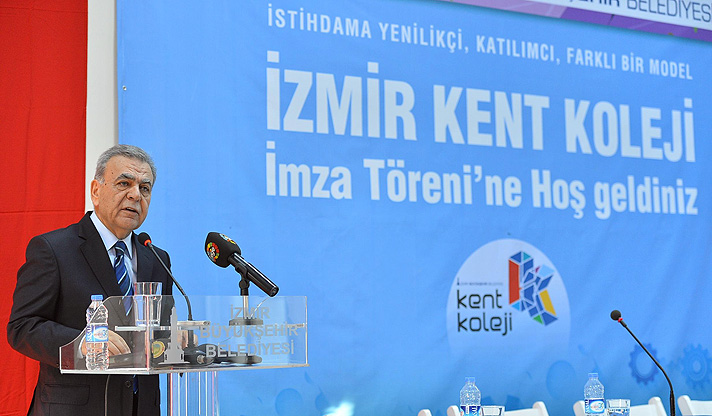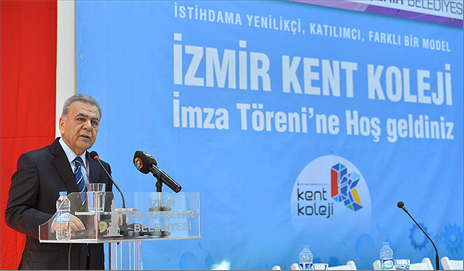 İzmir Kent Koleji’nin tamamen “sosyal bir proje” oluğunu ifade eden Büyükşehir Belediye Başkanı, “Bu, iş ve aş vermek üzere yola çıkılmış bir proje. Bu kolejin giderek büyümesini sağlarsak. Türkiye'nin en büyük sorunu olan istihdama çok büyük katkımız olur. Önemli olan bu işi başarıyla sürdürebilmektir” dedi.