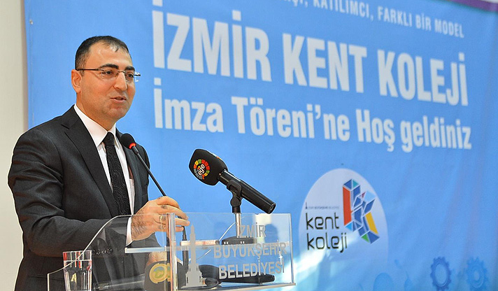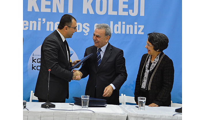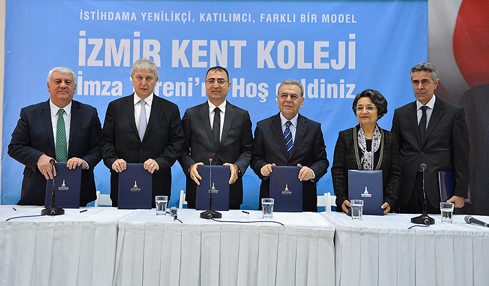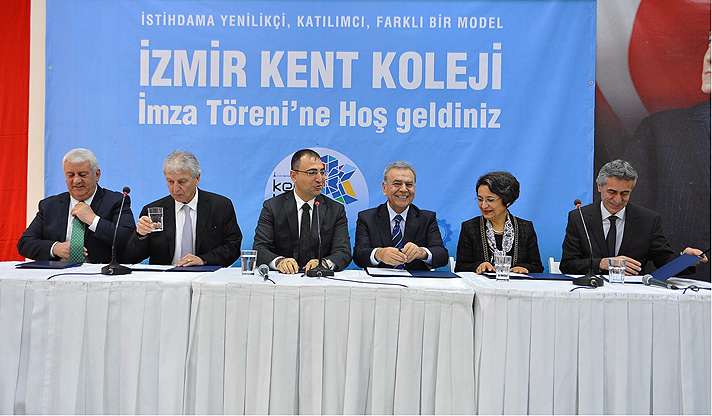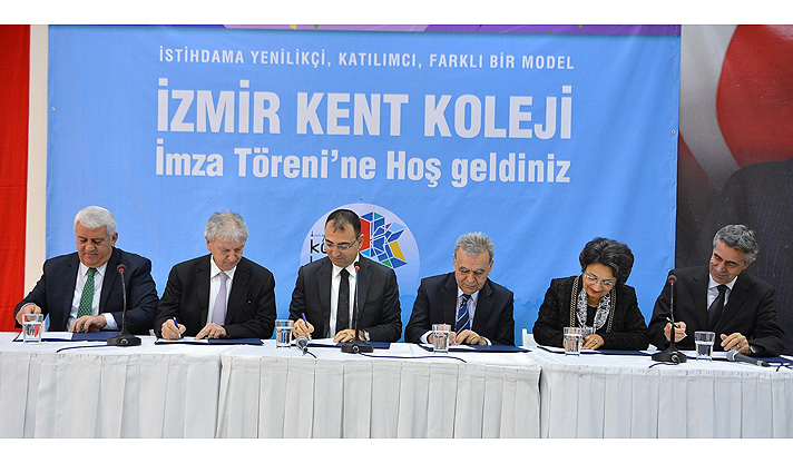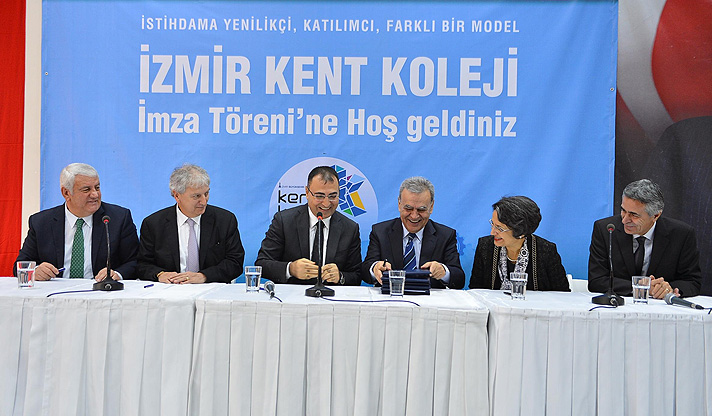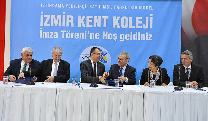 İzmir Büyükşehir Belediyesi’nin sanayi sektörünün kalifiye eleman ihtiyacını gidermeye yönelik önemli adımlarından biri olan Kent Koleji projesinde işbirliği yelpazesi her geçen büyüyor. İzmir Büyükşehir Belediyesi ve proje ortakları Yaşar Üniversitesi, Ege Üniversitesi, Ege Bölgesi Sanayi Odası ve İzmir Esnaf ve Sanatkarlar Odaları Birliği ile İzmir Kalkınma Ajansı (İZKA) arasında destek protokolü imzalandı. Protokolü İzmir Valisi Mustafa Toprak, İzmir Büyükşehir Belediye Başkanı Aziz Kocaoğlu, Ege Üniversitesi Rektörü Prof. Dr. Candeğer Yılmaz, Yaşar Üniversitesi Rektör Yardımcısı Prof. Dr. Ali Nazım Sözer, Ege Bölgesi Sanayi Odası Yönetim Kurulu Başkanı Ender Yorgancılar ve İzmir Esnaf ve Sanatkarlar Odaları Birliği Başkanı Zekeriya Mutlu imzaladı.