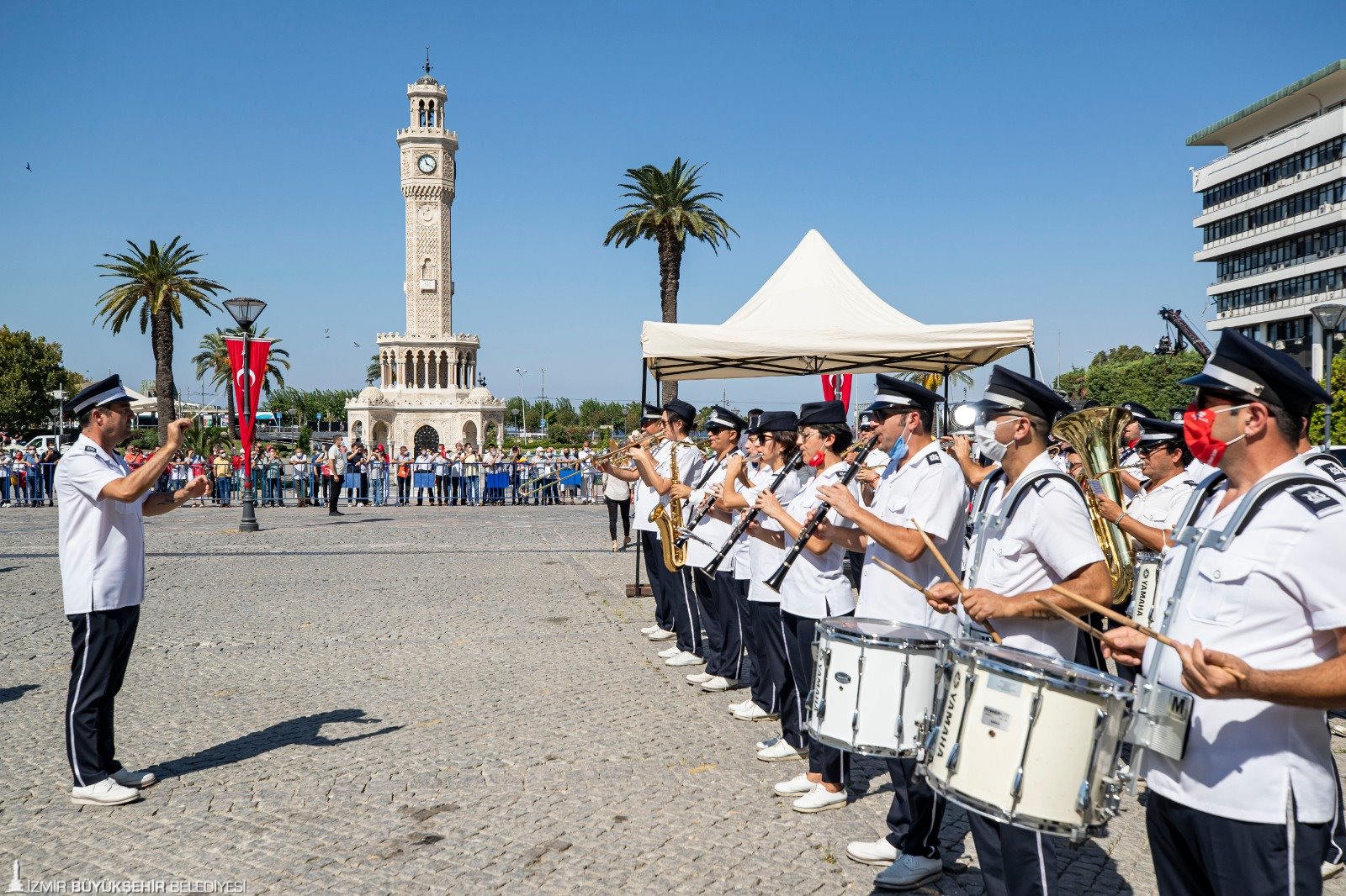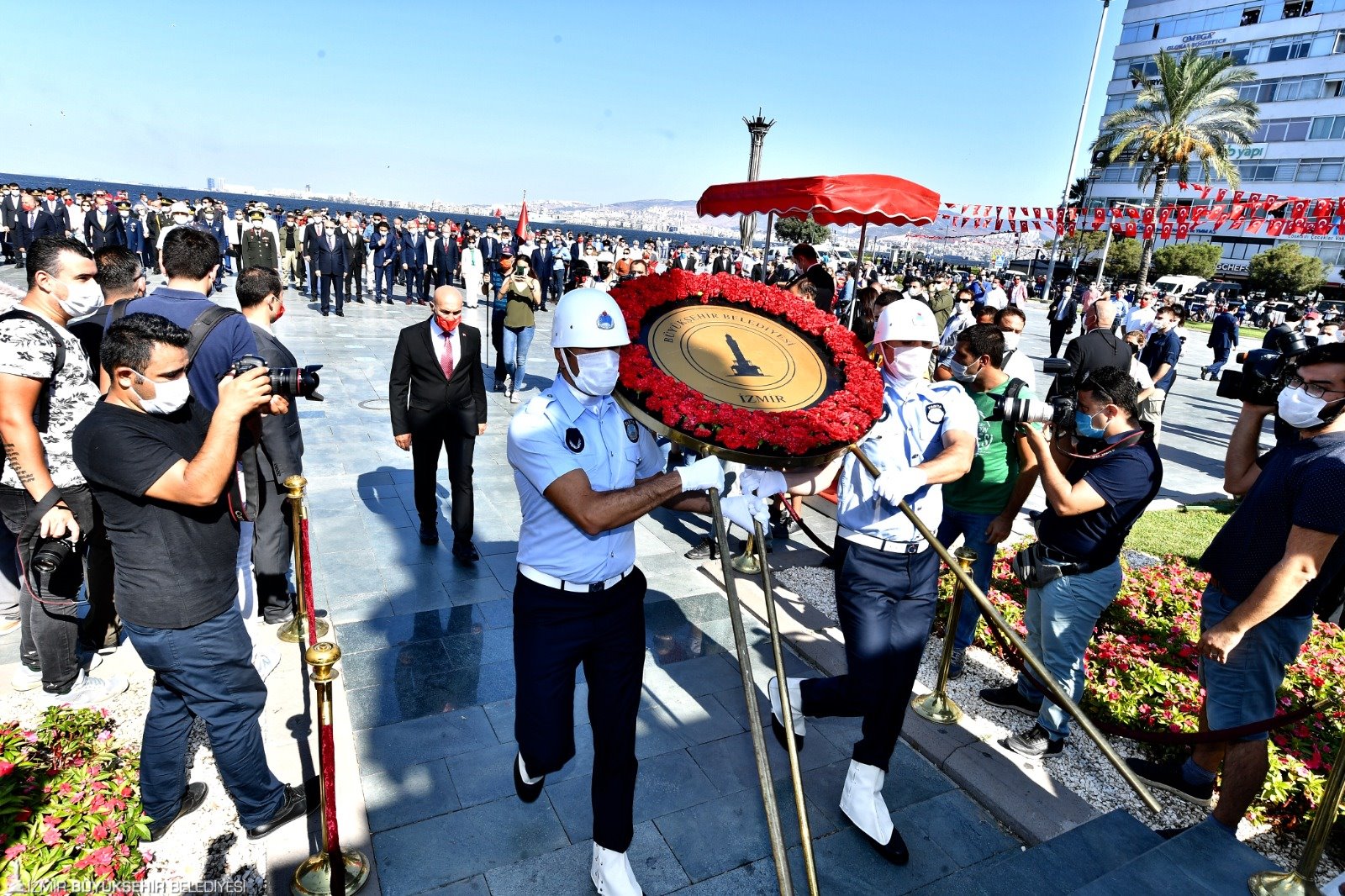 İzmir Büyükşehir Belediyesi'nce düzenlenen 9 Eylül etkinlikleri, Cumhuriyet Meydanı'ndaki resmi törenle devam etti. Törene İzmir Valisi Yavuz Selim Köşger, Ege Ordu ve Garnizon Komutanı Korgeneral Ali Sivri, İzmir Büyükşehir Belediye Başkanı Tunç Soyer, CHP İzmir Milletvekillerinden Kani Beko, Atila Sertel, Sevda Erdan Kılıç, Özcan Purçu, Murat Bakan, Bedri Serter, MHP İzmir Milletvekilleri Tamer Osmanağaoğlu ile Hasan Kalyoncu, AK Parti Genel Başkan Yardımcısı ve İzmir Milletvekili Hamza Dağ, AK Parti İzmir milletvekillerinden