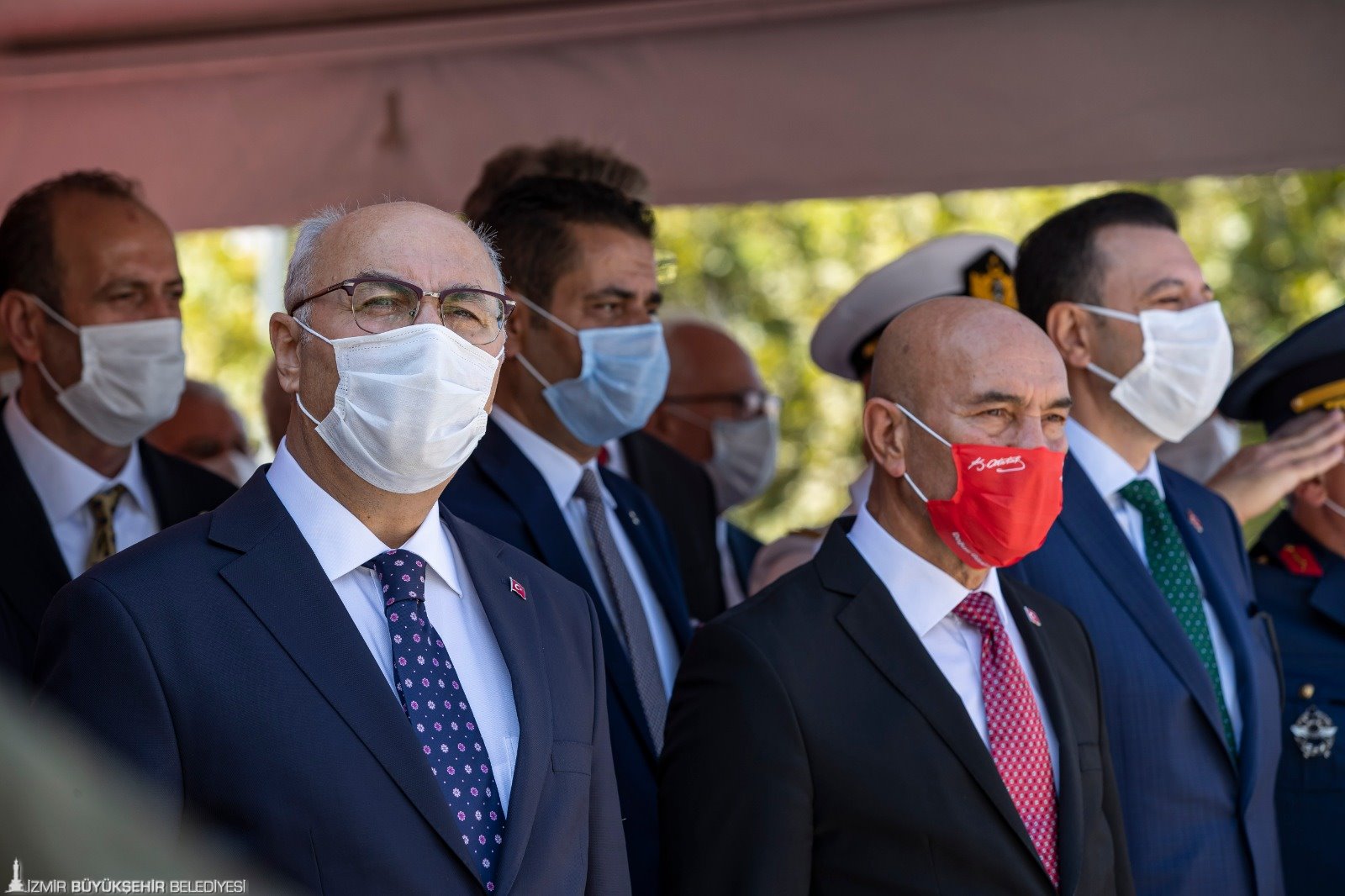 Daha sonra konuşma yapan İzmir Büyükşehir Belediye Başkanı Tunç Soyer, 9 Eylül'ün İzmir’in kurtuluşu ve Cumhuriyet’e giden taşların döşendiği sürecin başladığı gün olduğunu söyledi. Dünya halklarına örnek bir bağımsızlık mücadelesi ve özgürlük hikayesinin ilk cümlelerinin 98 yıl önce burada, İzmir’de yazıldığını belirten Tunç Soyer, “Şüphesiz her ülkenin, her milletin tarihinde zaferler ve kahramanlık destanları var. Ve elbette her toplum, bu destan ve öykülerle haklı bir övünç yaşar. Ancak bize kahramanlarımızın bıraktığı destan, bu şehrin parçası olan bizleri, çok ayrı gururlandırıyor” dedi.