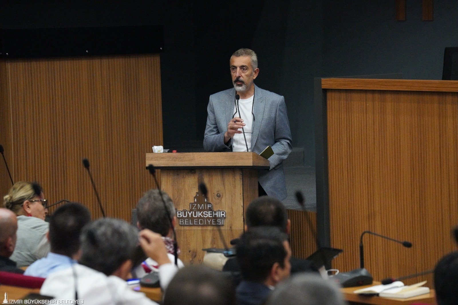 İzmir Planlama Ajansı çatısı altında Vizyon 2074 için çalışmaların başladığını anımsatan Prof. Dr. Koray Velibeyoğlu, konuşmasının devamında şunları söyledi: “2030'a kadar bizi bağlayan bir ulusal hedef var. Bir de kendi kurumsal stratejik planımız var. Bir de Misyon Kent hedefimiz var. İzmir 2030'a kadar karbon nötr kent olmayı taahhüt ediyor. Bu bir hedef deklarasyonu. Hedef yapılabilir ölçüde olduğu zaman iddialı olmasında sorun yok. Bunlar bizim bağlamlarımız, bunların içinde hareket edebiliyor olmamız lazım. Kentin planlarının da yenilenmesi gerekiyor. 2074 hedefini birlikte oluşturmak istiyoruz. Bunu yapabilmek için de başlangıç noktalarına ihtiyaç var. Nereden başlayacağız? Beni o senaryoya götürecek başlangıç noktaları ne? Benim hangi başlangıç noktalarım var ve 'Buradan daha iyi nerelere gidebilirim' konusunu düşünmeye başladığımız zaman karşımıza 'Ben buna bir günde gidemeyeceğim. O zaman bir geçiş tarif etmem lazım. Biz o geçişin 5 yıllık halkasını tasarlıyoruz. Veya 50 yılın 5 yılını tasarlıyoruz diye düşünmemiz lazım. Bu geçişin adil olması lazım.”