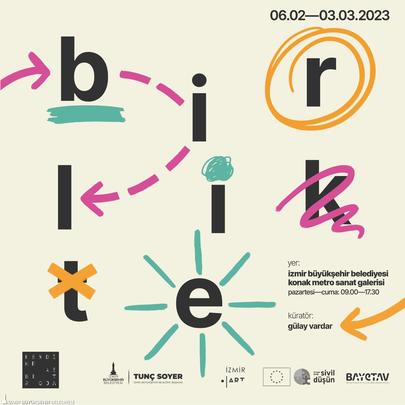 İzmir Büyükşehir Belediyesi, sanat öğrencileri için karşılıklı öğrenme ve deneyim aktarımı sağlamak amacıyla Kendine Ait Bir Oda (KABO) sanat oluşumu ile Şırnak ve İzmir’de yaşayan 20 öğrenciyi bir araya getirdi. “Birlikte” projesiyle bin 600 kilometre uzaklıktaki iki şehirde yaşayan Güzel Sanatlar Fakültesi öğrencileri bir sergiye imza attı. İzmir Büyükşehir Belediyesi, Avrupa Birliği Sivil Düşün Programı ve BAYETAV (Bir Arada Yaşarız Eğitim ve Toplumsal Araştırma Vakfı) işbirliğiyle düzenlenecek sergi Konak Metro Sanat Galerisi'nde 6 Şubat-3 Mart tarihleri arasında ziyaret edilebilecek.