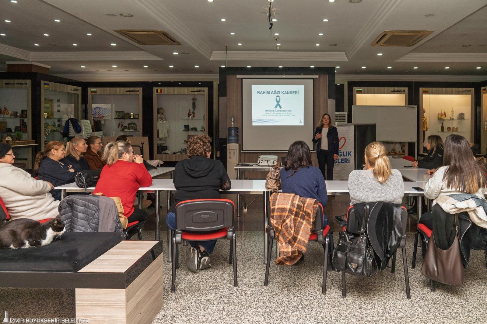 İzmir Büyükşehir Belediyesi tarafından düzenlenen Rahim Ağzı Kanseri Farkındalık Ayı etkinlikleri kapsamında, İzmirli yurttaşlar hastalık hakkında kapsamlı biçimde bilgilendiriliyor. Ay sonuna kadar 30 ilçede tamamlanması planlanan farkındalık eğitimlerinde; rahim ağzı kanserinin risk faktörleri, belirtileri, erken teşhis ve tarama faaliyetlerinin önemi, tedavi süreçleri ile korunma yöntemleri yurttaşlara aktarılıyor.