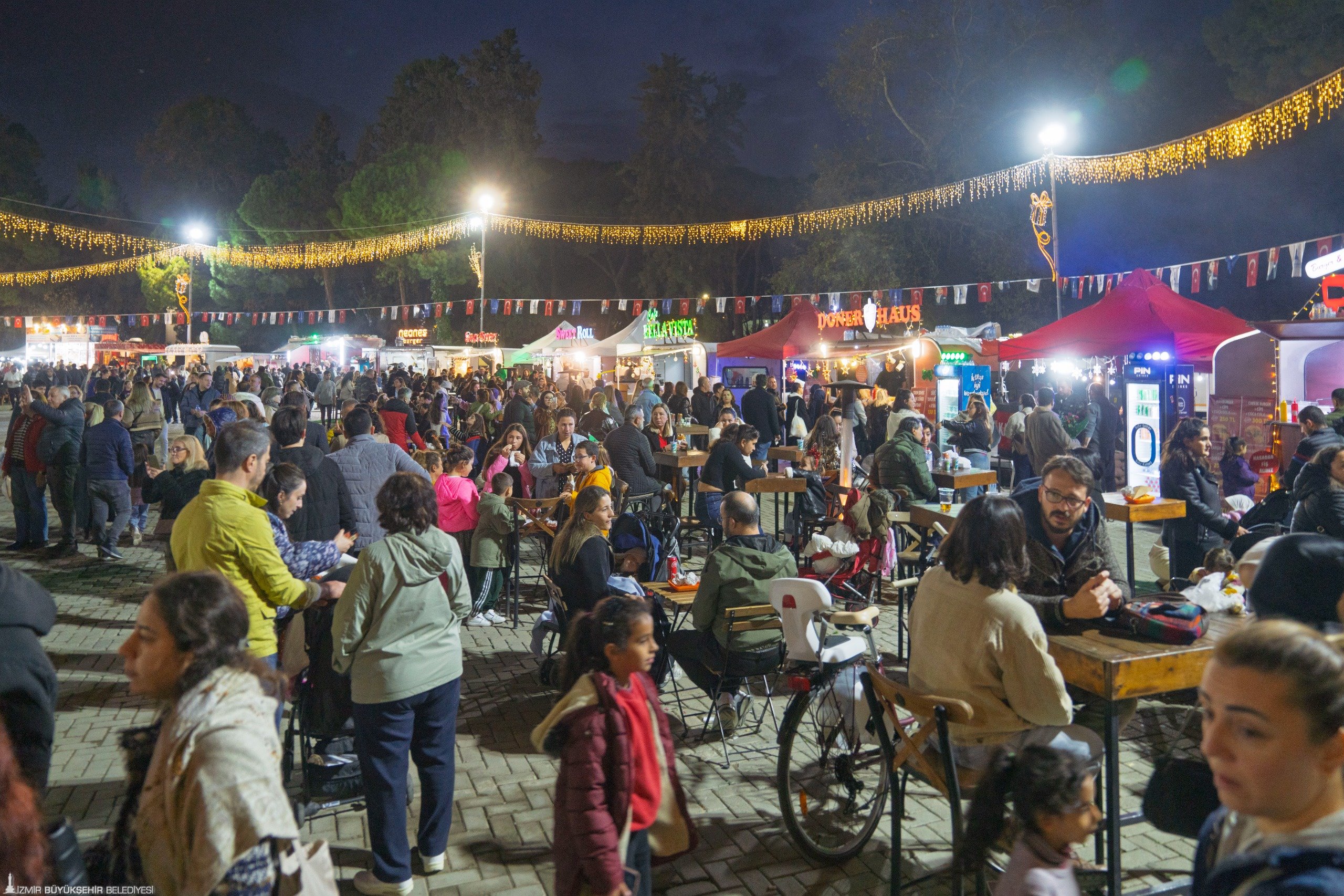 İzmir Büyükşehir Belediyesi, yeni yıla keyifli etkinliklerle hazırlanıyor. Kültürpark’ta 31 Aralık’a kadar sürecek “Yeni Yıl Festivali”, konserlerden atölyelere, sokak gösterilerinden gastronomi etkinliklerine kadar geniş bir programla İzmirlilere unutulmaz bir atmosfer sunuyor. Kültürpark eski lunapark alanında dev yılbaşı ağacının karşıladığı konuklar, renkli gösteriler, ilgi çeken stantlar, konserler, buz pisti, dans gösterileri, DJ performansları ve sahne şovları ile eğlenceli dakikalar yaşıyor. Kültürpark’taki yılbaşı temalı dekorlar ve özel fotoğraf köşeleri ise ziyaretçilere görsel bir şölen sunuyor. Festival, her yaşa hitap eden zengin programı ile sınırsız eğlence imkanı sağlıyor.